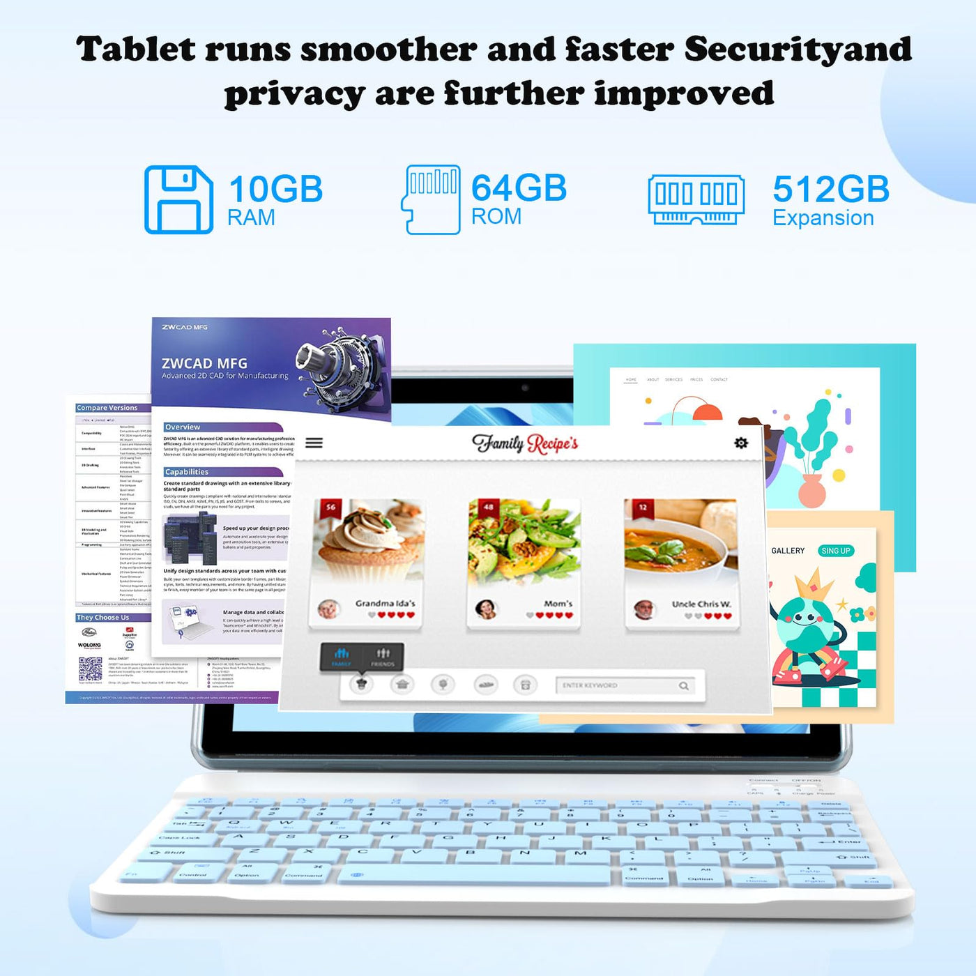 10.1 Inch Android 13 Tablet, 2024 Newest 2 In 1 Tablets With Keyboard Case Mouse Stylus, 10Gb (4Gb Physical+ 6Gb Virtual) Ram+64Gb Rom/ 512Gb Expandable Tablet 1.8Ghz Quad-Core Processor Tablet, 1280*800 Ips Hd Touch Screen, 8Mp Dual Camera, 6000Mah Battery Games Tablet, 2.4G/5G Wi-Fi 6 Bt 5.0 Android Tableta Pc.