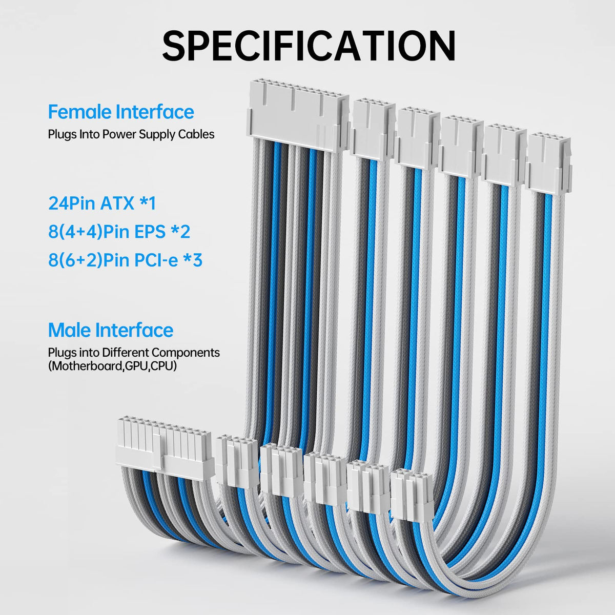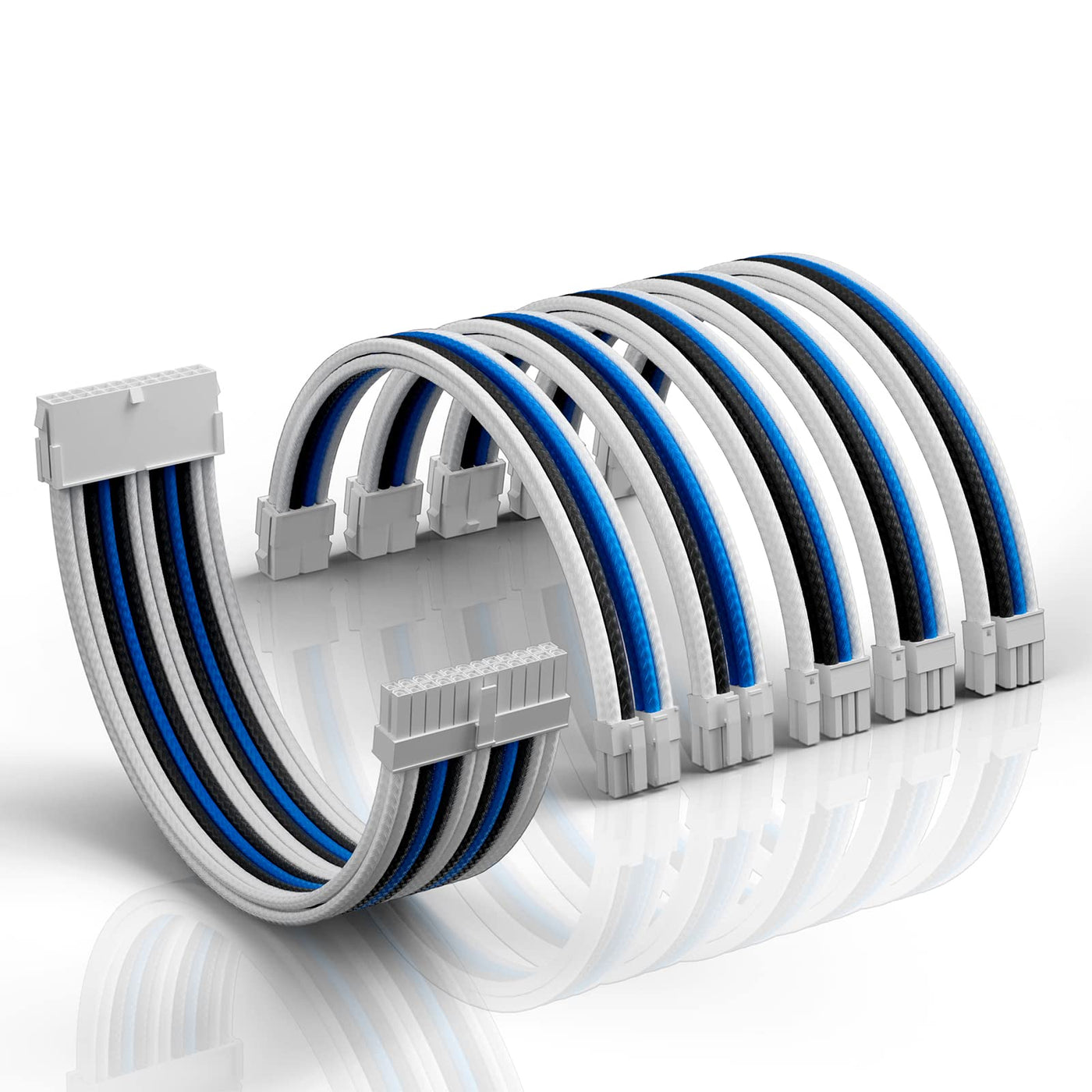 Asiahorse Customization Mod Sleeve Extension Power Supply Cable Kit 16Awg Atx/Eps/8 Pin Pci E/6 Pin Pci E (Mix Color, Blue White)