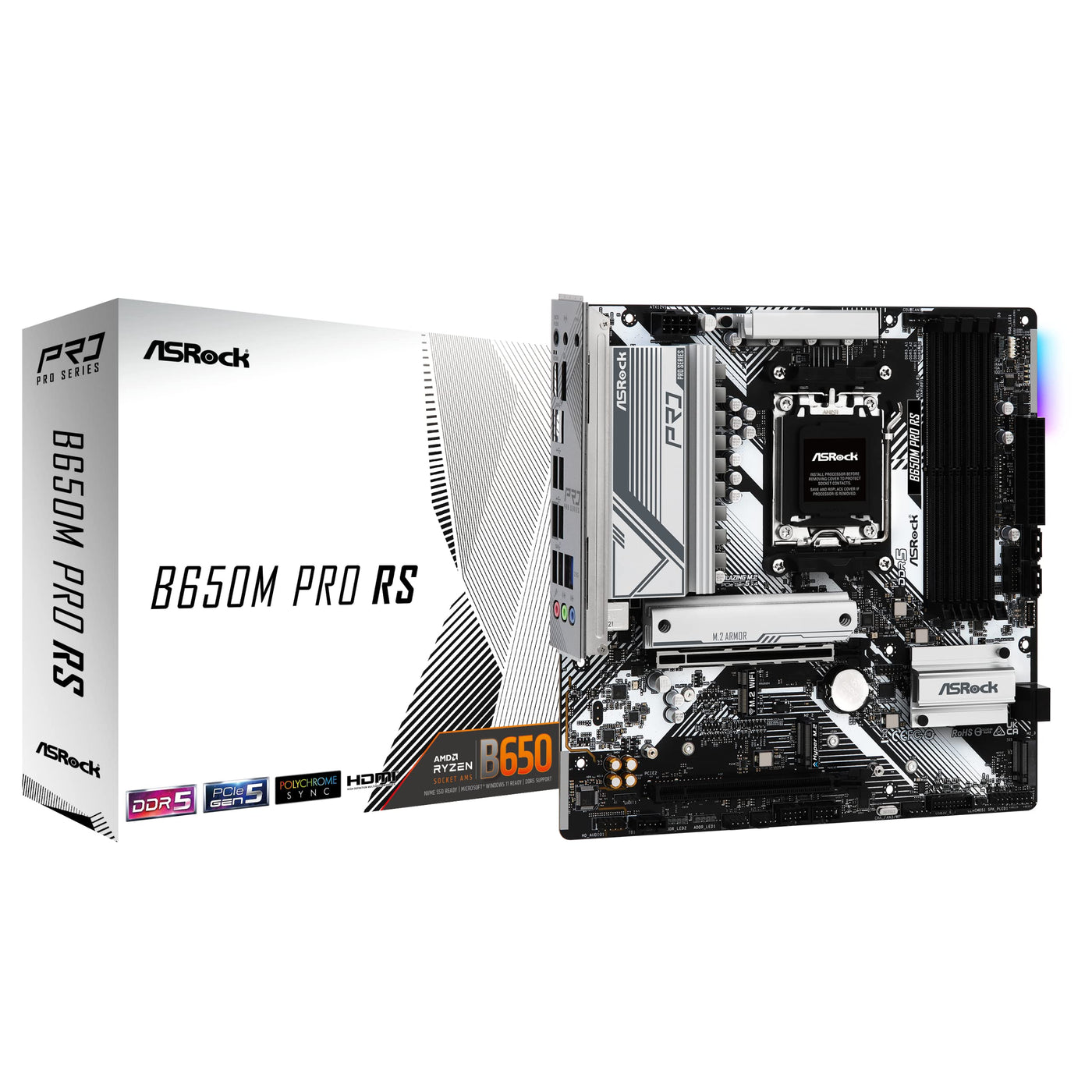 Asrock B650M Pro Rs Amd Socket Am5 Ryzen 7000/8000/9000 Series Ddr5 7200+ (Oc) Mhz 256Gb M.2 Key E For Wifi Sata3 6.0 Gb/S Micro Atx Motherboard 2.5G Lan Bios Flashback