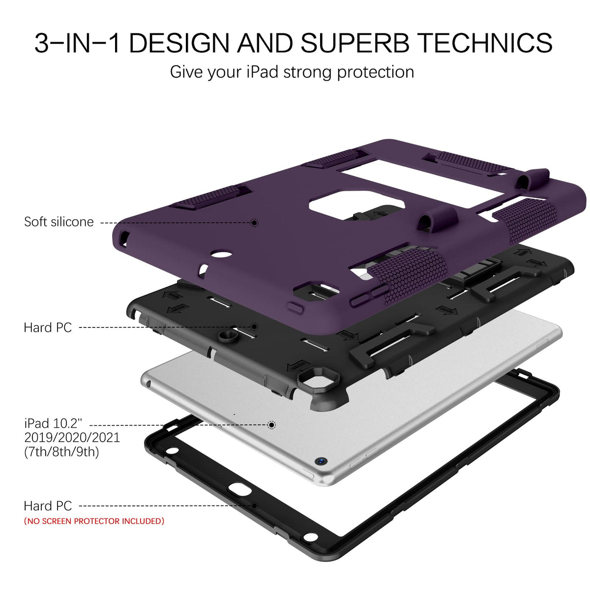 Bentoben, Designed By Italy, All The Products Are Manufactured With Premium Materials In A Continuous Effort To Produce High Quality Products That Are Protective And Simple. Product Features: Sturdy And Feels Good To The Touch. Raised Border Around The Screen, Without Built-In Screen Protector. A Silicone Exterior Cover With Two Interlocking Plastic Pieces, Easy To Install And Disassemble . 3 Layers Provide Awesome Protection For Your Ipad 9Th Generation / Ipad 8Th Generation / Ipad 7Th Generation Tablet From Kids Or Something Big And Bulky. Built-In Kickstand Is Well Supported, Can Be Folded, Won'T Take Up Space. Textured Rubber Surface Protect Ipad 8 Generation From Slip, Scratches And Fingerprint. Cute Port Cover Helps To Protect The Tablet From Dust And Extend The Service Life. Openings For Power, Earbuds, Camera Etc Are All Precise Positioned Without Obstruction. Specifications: Compatible Model: Ipad 9Th Generation 10.2 Inch 2021 Ipad 8Th Generation 10.2 Inch 2020 Ipad 7Th Generation 10.2 Inch 2019 Color: Deep Purple Material: Pc & Silicone Package Includes: 1X Case Cover For Ipad 9Th / 8Th / 7Th Generation Please Note: Accessories Only, Device Not Included.