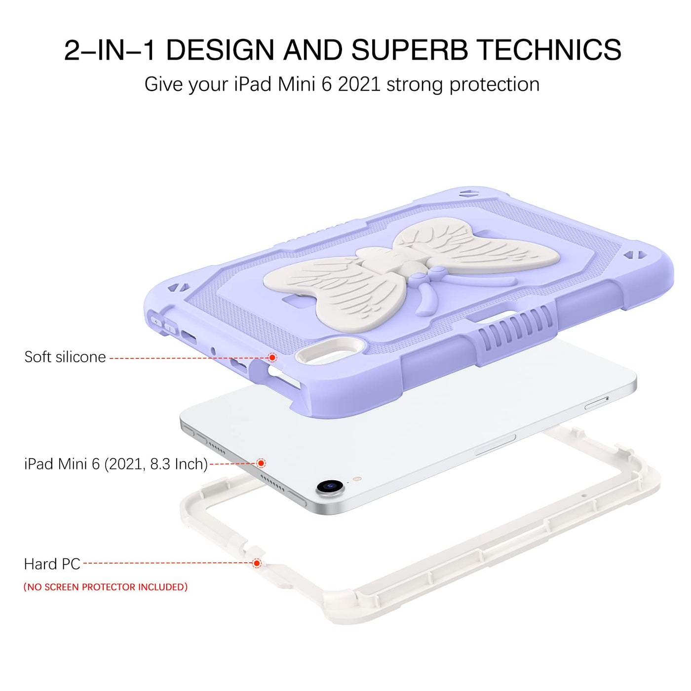 Bentoben For Ipad Mini 7 A17 Pro Case, For Ipad Mini 7Th/6Th Generation Case (2024/2021) With Pencil Holder Kickstand Heavy Duty