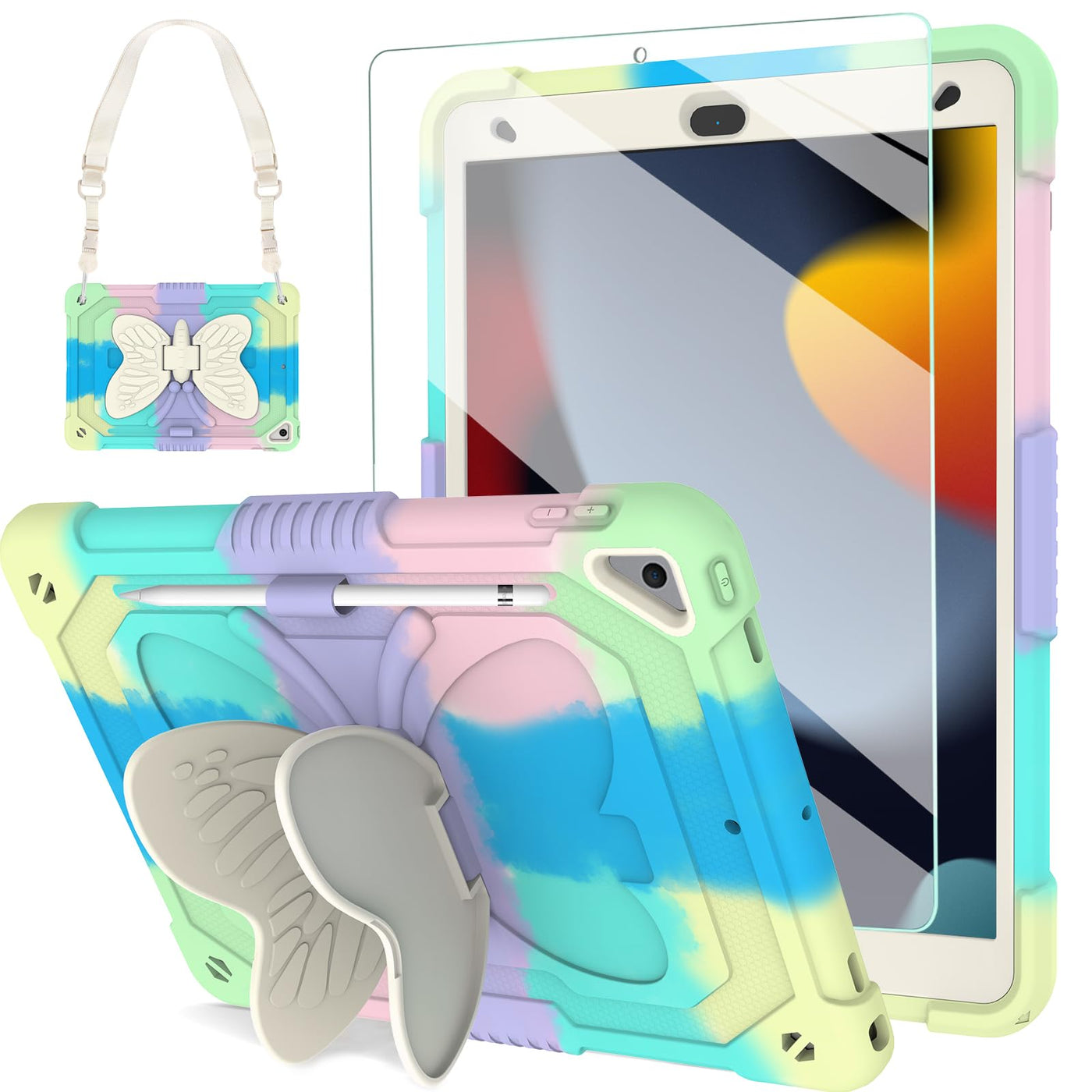 Blosomeet Kids Case For Ipad 10.2 Inch 2021 With Tempered Glass Screen Protector,Ipad 9Th/8Th/7Th Generation Case With Stand Pen