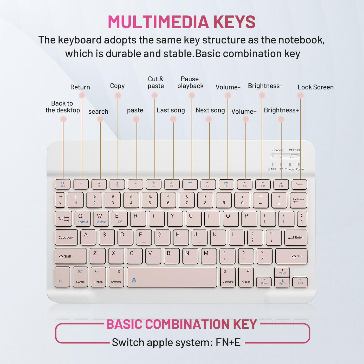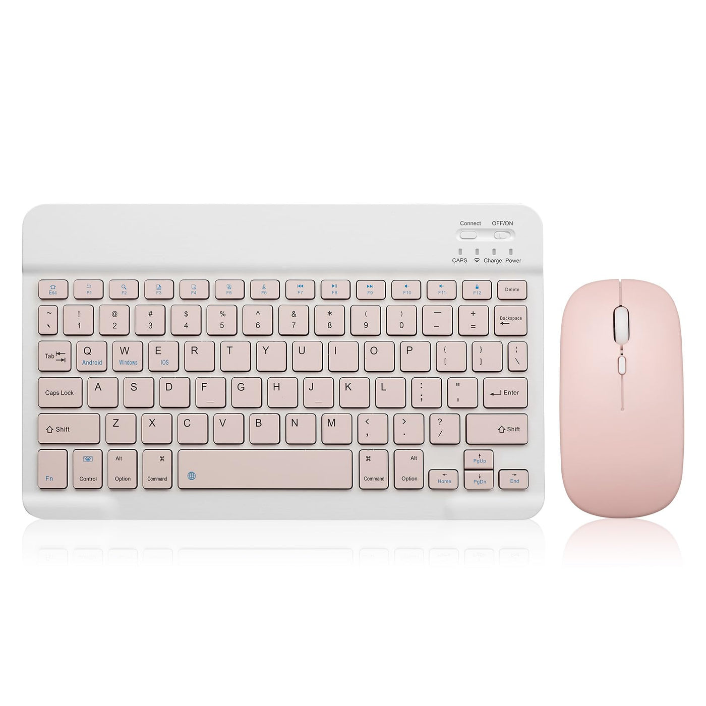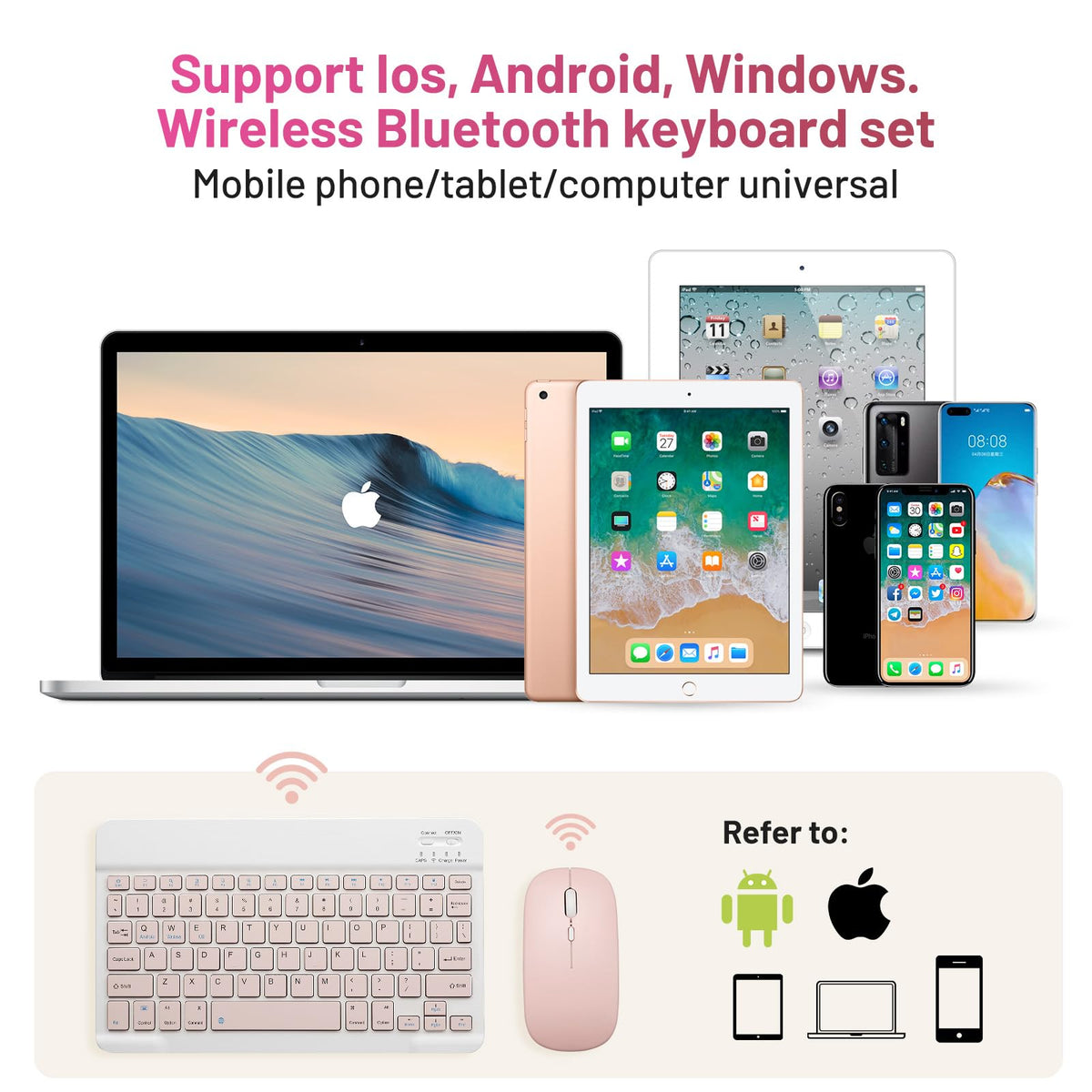 Q: What makes this keyboard and mouse set unique compared to others?A: This set features a rechargeable design, hot keys for easy access to functions, and compatibility with a wide range of devices including iOS, Android, and Windows. Its portable design and stylish pink color also make it an attractive option for users.