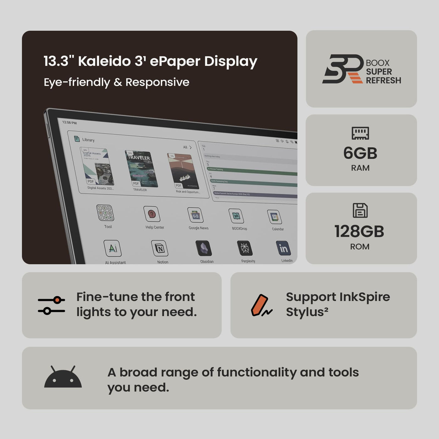 Boox Tablet Tab X C 13.3 Color Epaper 6G 128G E Ink Notebook