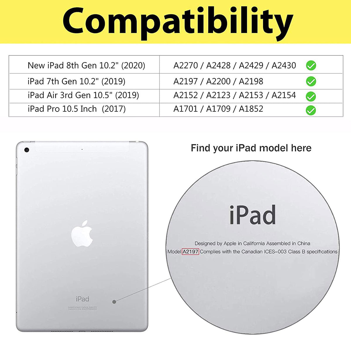 Q: Is the Bosness Case compatible with my iPad model?A: Yes, the Bosness Case is specifically designed for the 10.2 inch iPad 8th Generation (2020), 7th Generation (2019), iPad Air (3rd Generation) 10.5 inches (2019), and iPad Pro 10.5 inches (2017). Please check your iPad model number to ensure compatibility.