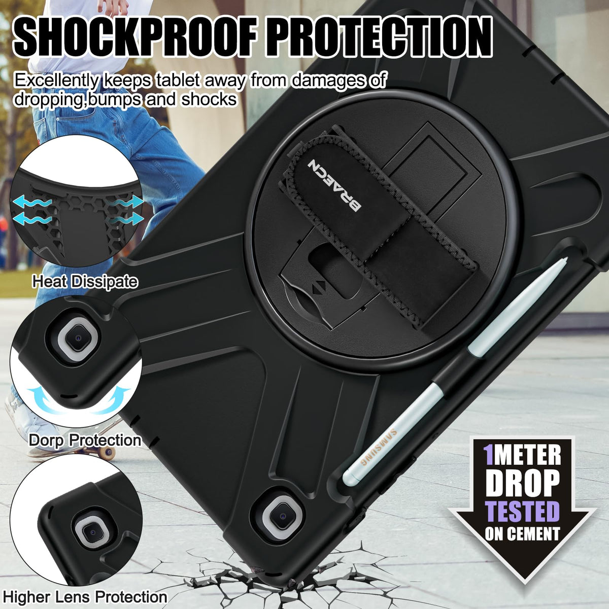 Braecnstock Samsung Galaxy Tab S6 Lite Case 10.4 Inch 2024/ 2022/ 2020 (Sm-P620/ P625/ P613/ P610/ P615/ P617/ P619) With 360 Rotating Hand Strap + Stand, Shoulder Strap, Pencil Holder Shockproof Rugged Heavy Duty Protection Suitable For Any People (Men Women Kids Girls Old Man ) Suitable For Any Scene (Trave, Working, Meeting, Warehouse, Car, In School Or Outdoors )