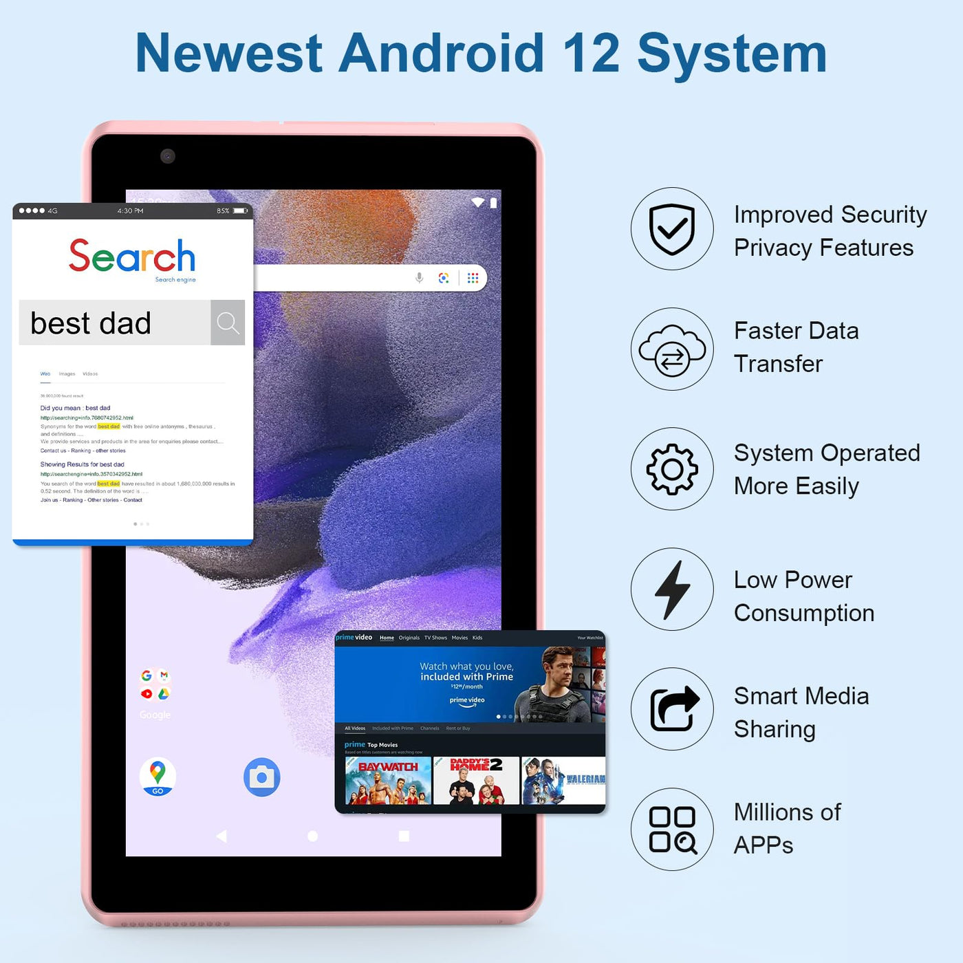 Byandby Tablet 7 Inch Android 12.0 Tablet, 4Gb+32Gb Rom (1Tb Expand), Quad Core, Wifi, Gms, Dual Camera, Educational, Games(Pink