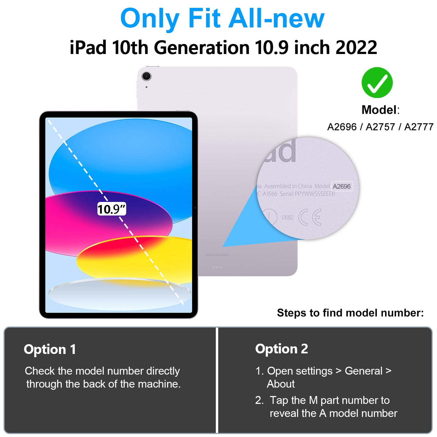 Q: Is this case compatible with all iPad models?A: No, this case is specifically designed for the iPad 10th Generation 10.9 inches (Models: A2757, A2777, A2696). Please check the model number on the back of your iPad before purchasing.