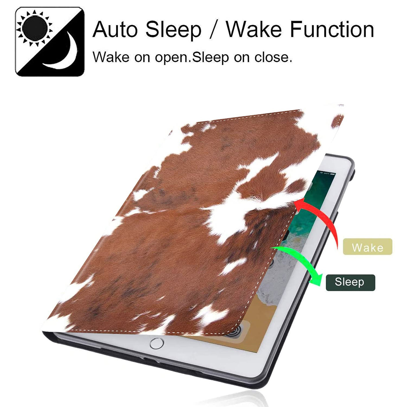 Q: How does the auto wake/sleep feature work?A: The auto wake/sleep feature uses a built-in magnetic connection. When you open the cover, it automatically wakes your iPad, and when you close it, the iPad goes to sleep, helping to conserve battery life.