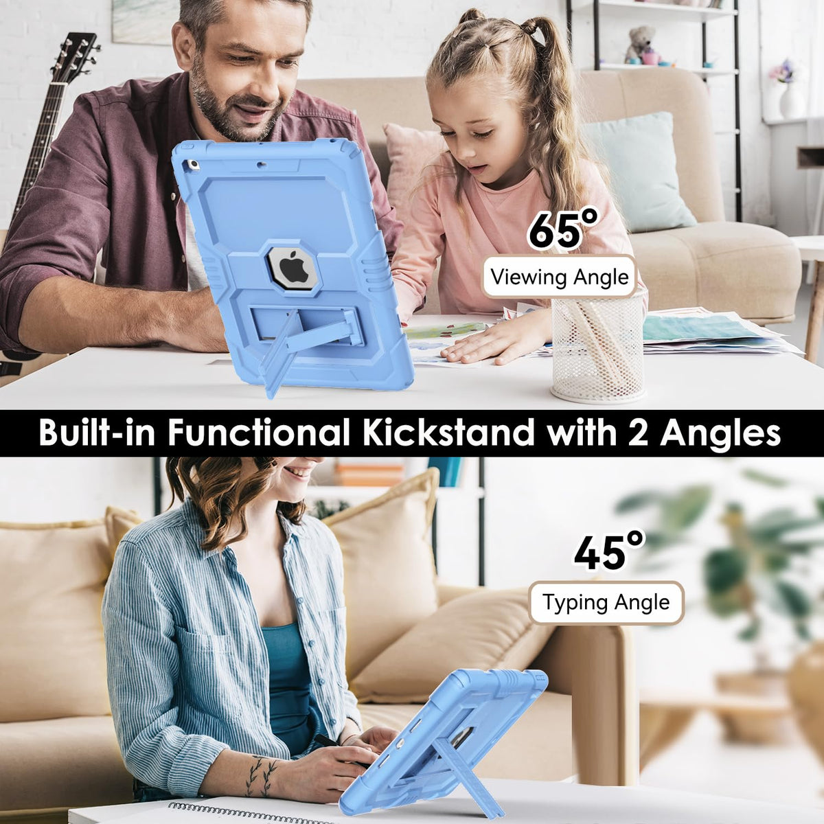 Q: Does the case have a kickstand feature?A: Yes, the case includes a built-in functional kickstand with two modes, allowing you to easily watch shows, play games, or type hands-free.