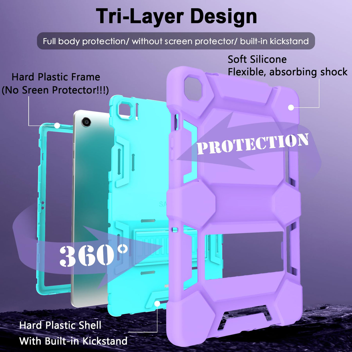 3 In 1 Shockproof Kickstand Protective Case Cover Compatible Ipad Models: Samsung Galaxy Tab A9+ 11 Inch 2023 (Model Number: Sm-X210/X216/X218) Advanced 3 Layer Protection Top Pc Frame---Anti-Scratch; Inner Pc Bumper Lining----Protect From Heavy Dust; Soft And Durable Silicone Outer Shell---Effectively Release Shock. Hands-Free Kickstand Feature Different Viewing Positions (Portrait View &Amp; Landscape View) To Adjust For Comfortable Movie-Watching And Keyboard-Typing Positions.&Nbsp; You Can Easily Watch Movies, Videos Or Make Video Calls With Other People In A Landscape Mode. Simple And Practical. Raised Lip For Screen And Camera Protection Raised Lip For Lens Will Protect Your Camera, The Silicone Front Shell Makes Your Galaxy A9 Plus Tablet More Protection,&Nbsp; So You Don'T Worry About Scratching Your Tablet When You Lay It Down. Accurate Cut-Outs Easy Access To All Buttons, Ports, Camera, Sensors, Speakers, Headphone Jack And Controls Without Removing The Case.&Nbsp; What'S In The Package --1X Case Cover For New Samsung Galaxy Tablet A9+ (2023 Release). Please Note: Case Only, Screen Protector And Other Accessories Are Not Included.
