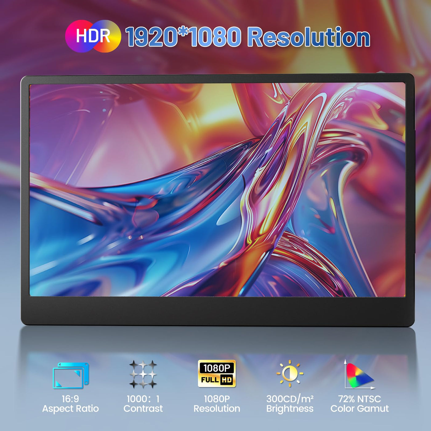 Q: What is the resolution and display technology of the Cenerius laptop screen extender?A: The Cenerius laptop screen extender features dual 14.2-inch Full HD IPS screens with a resolution of 1080P. This technology provides vibrant colors and sharp images, ensuring an enhanced viewing experience.