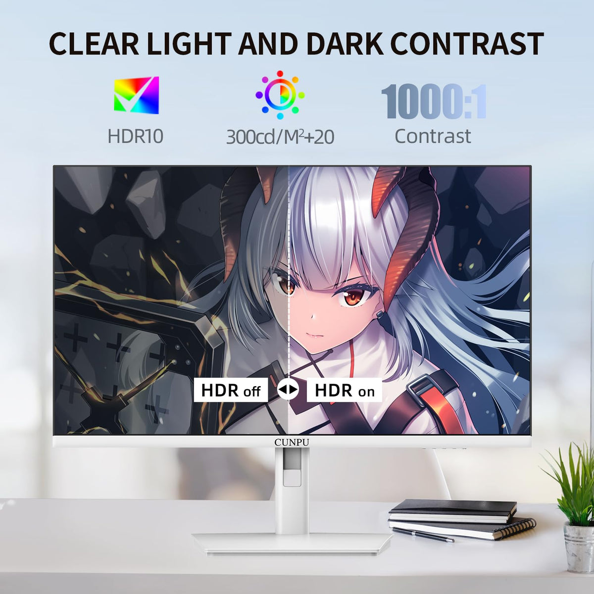 Cunpu 27 Inch White 180Hz Gaming Monitor, Qhd 2560X1440 Fast Ips Pc Monitor, Adaptive Sync, 100% Srgb, Hdr10, Built In Speaker,