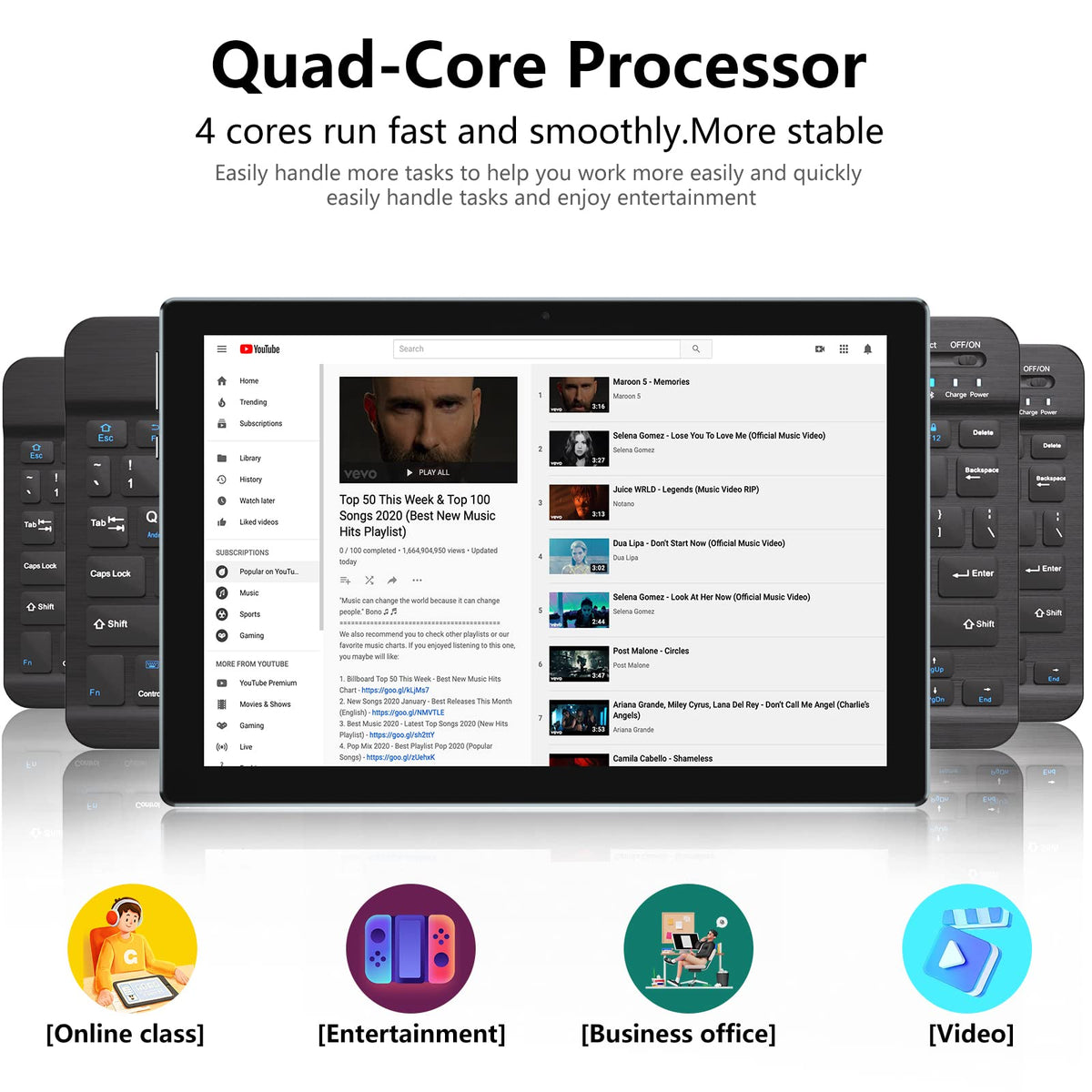 2024 Newest 2 In 1 Tablet With Keyboard, 10.1 Inch Android 11 Tableta Pc, 6Gb Ram+128Gb Rom+1Tb Expend, 1.8Ghz Quad Core, 1280*800 Fhd Touch Screen, 8Mp Dual Camera, Bt 5.0 2.4G Wi-Fi, Mouse| Case| Stylus| Tempered Film