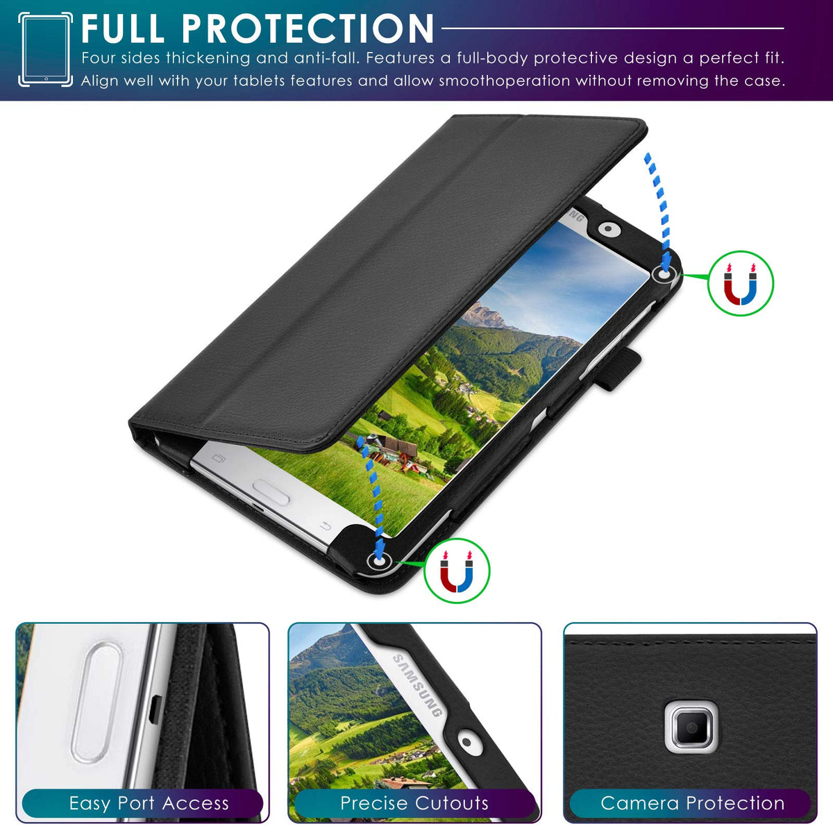 Q: How does the magnetic closure work on this case?A: The DETUOSI case features a magnetic strip inside that keeps the cover tightly closed, providing added protection against accidental falls and ensuring your tablet stays secure.