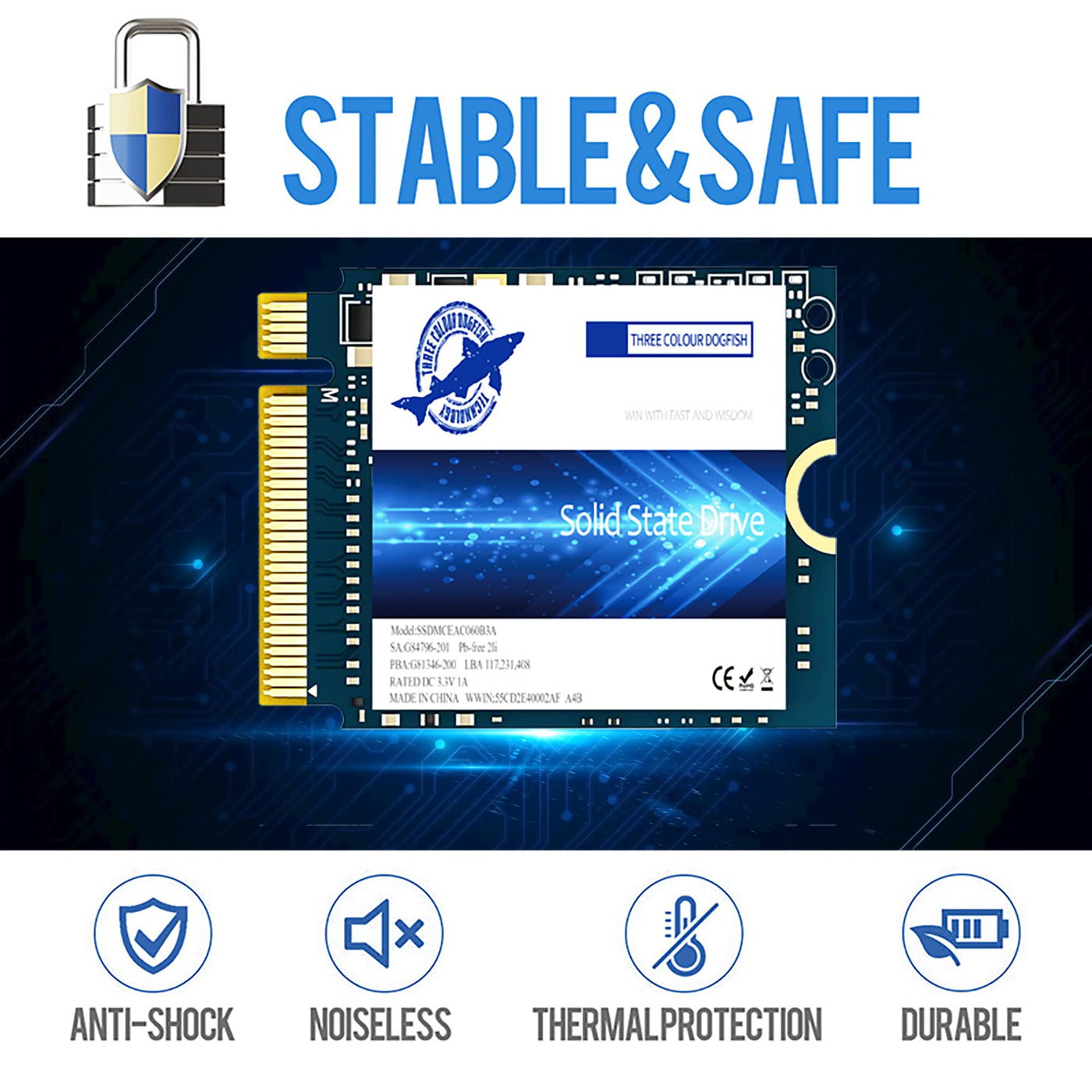 ?Ultra High Speed Transmission?Dogfish'S M.2 2230 Ssd Pcie Nvme 4.0 Uses The Latest 3D Nand Technology. The Read Speed Is Up To 3500Mb/S, And The Write Speed Is Up To 3300Mb/S. It Can Achieve Faster Data Transmission. | ?Wide Compatibility? The M.2 2230 Nvme Ssd Apply To Laptops And Desktops, Steam Deck,Ps5 Etc.Compatible With Windows And Mac Os.The Most Important Thing Is That It Is Applicable To A Variety Of Game Consoles, And The Super High-Speed Game Experience Is Not Stuck. | ?Data Safety? Pcie 4.0 Ssd Uses The World'S Most Advanced Memory And A New Generation Of Intelligent Tlc Chips To Further Improve The Stability Of The System. It Is Equipped With Error Correction Code (Ecc) Technology To Improve The Reliability Of Data Transmission, Correct Errors In Data Transmission, And Protect The Security Of Data Transmission. | ?Excellent Performance ? Compared With Ssds In The Past, M2 Nvme Ssds Have Less Noise And Heat During Operation. They Use Intelligent Temperature Management And Reassuring Cooling Design To Reduce Power Consumption And Extend The Battery Life Of Laptops. It Has Excellent Impact Resistance And Vibration Resistance, Greatly Improving The Durability Of Ssd. | ?5-Year Warranty? Dogfish'S Ssd Has The Industry'S Top Level Reliability. Through Thorough Quality Management And Safety Inspection, It Has A 5-Year Reassurance Guarantee.Please Contact With Us If You Have Any Problems.