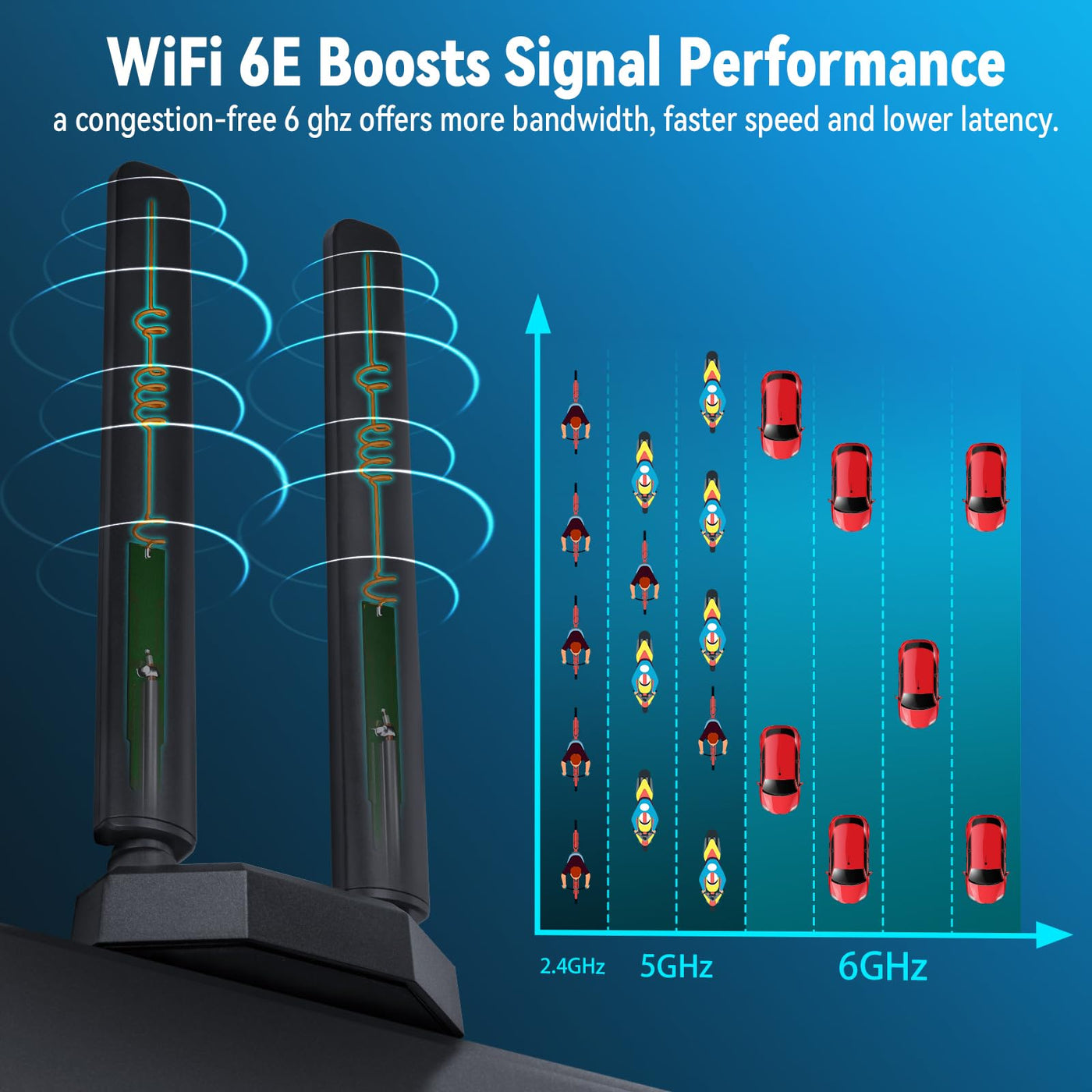 Eightwood Wifi 6E Tri Band Antenna 6Ghz 5Ghz 2.4Ghz Gaming Wifi Antenna Magnetic Base With 6.5Ft Extension Cable For Pc Desktop