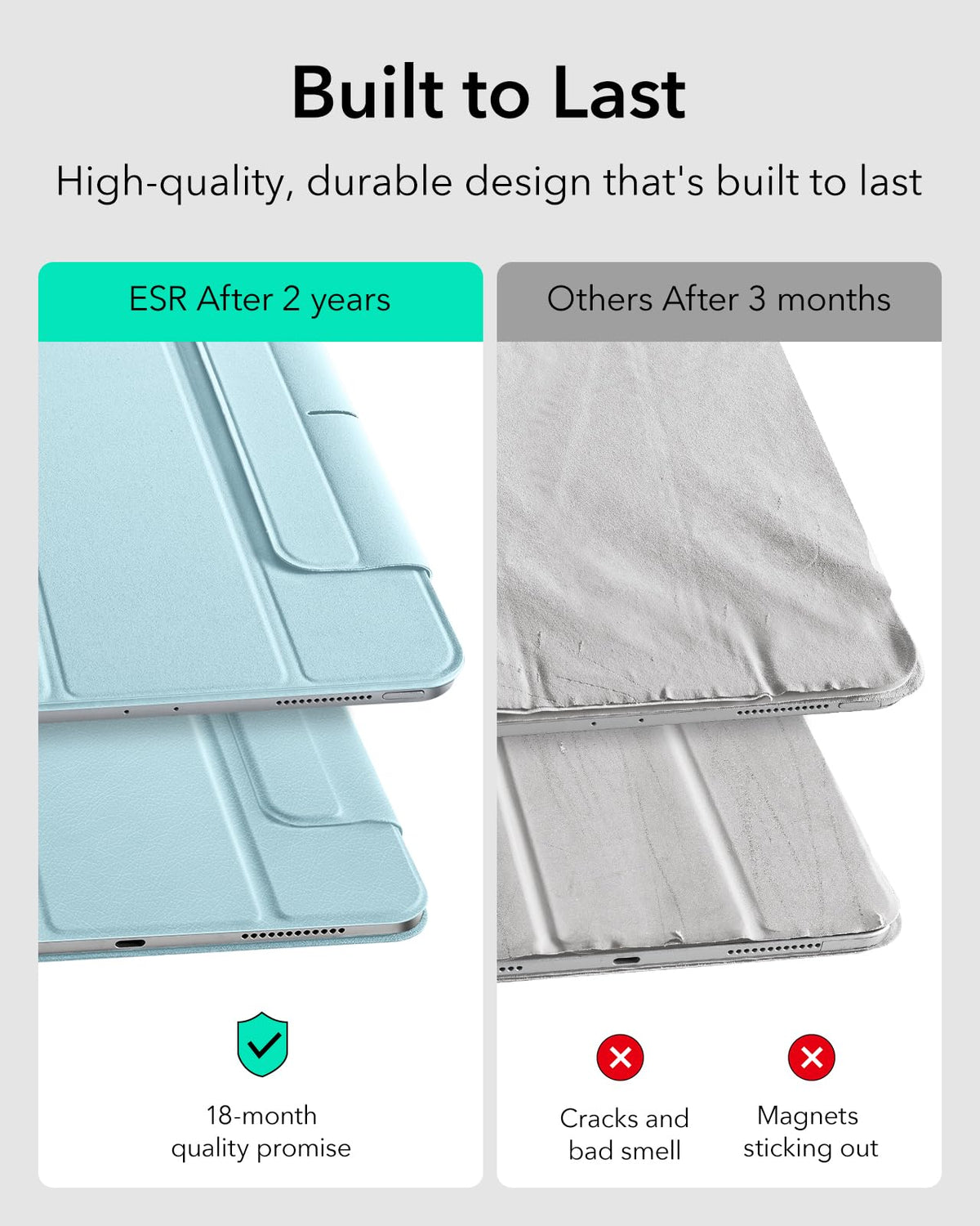 Esr For Ipad Air 11 Inch Case M2(2024), Ipad Air 6Th/5Th/4Th Gen (2022/2020), Powerful Magnetic Attachment, Slim Trifold Stand Case, Supports Pencil Pro&Pencil(Usb C), Durable Protection, Light Blue