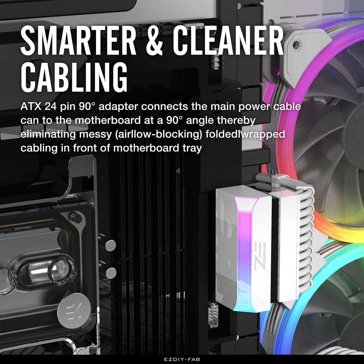 Ezdiy Fab Atx 24 Pin 90 Degree Power Connector Adapter 5V 3 Pin Argb Rainbow Female To Male Power Adapter For Computer Motherboa