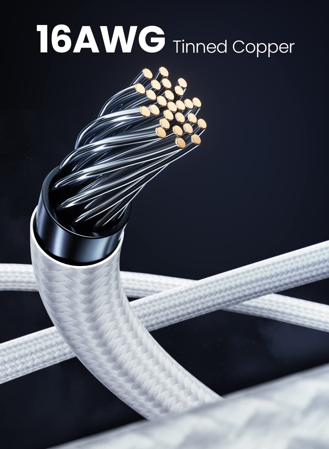 Q: How much power can the Fasgear 16pin GPU power cable support?A: This power cable supports up to 600W output thanks to its 16AWG tinned copper wire, ensuring stable voltage transmission and high power efficiency for your graphics card.