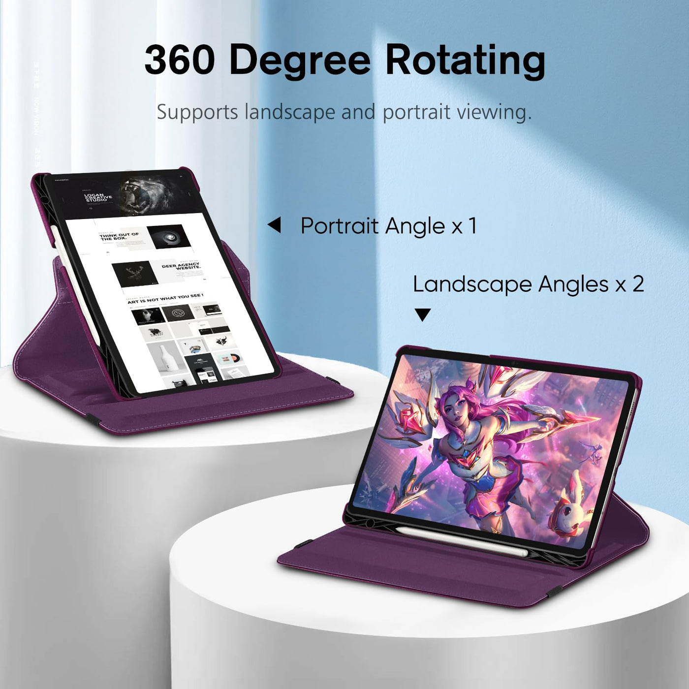 Q: How does the 360-degree rotating feature work?A: The 360-degree rotating feature allows you to easily switch between horizontal and vertical viewing angles. This swivel case supports multiple viewing positions, providing flexibility for activities like watching videos, reading, or video chatting.