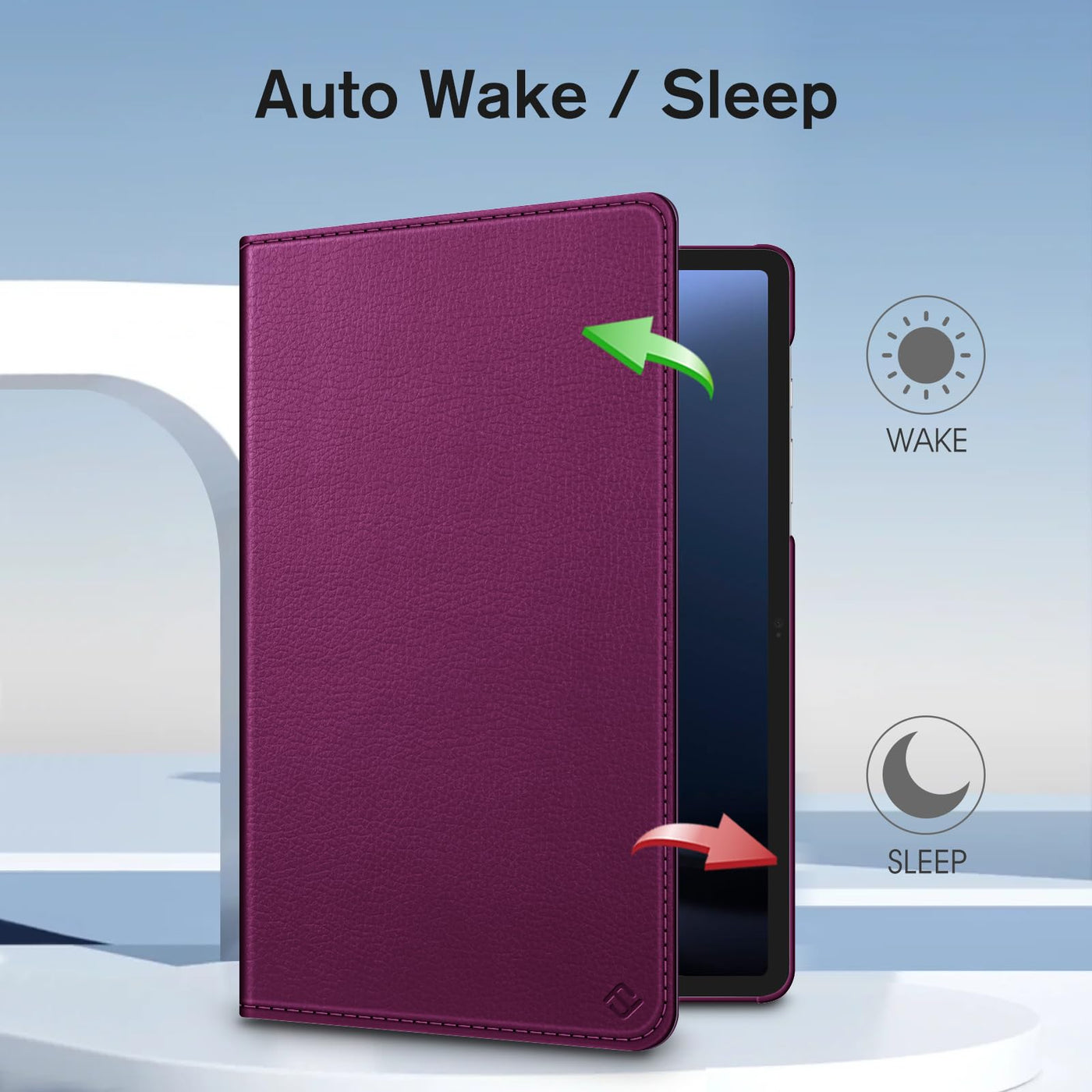 Q: Does the case support auto wake/sleep functionality?A: Yes, this case includes an auto wake/sleep feature that automatically wakes your device when the cover is opened and puts it to sleep when closed, helping to conserve battery life.