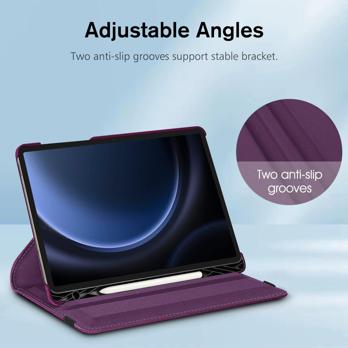 Please Note: This Swivel Case Is Compatible With Samsung Galaxy Tab S9 Fe 5G 10.9 Inch (Model Sm-X510/X516B/X518U), Samsung Galaxy Tab S9 11 Inch (Model Sm-X710/X716B/X718U) 2023 Release Tablet. This Fintie 360 Degree Rotating Case Cover For Samsung Is A Must Have A Perfect Companion For An Easy And Enjoying Life. It Is Designed With Functionality And Visual Elegance In Mind, This Case Is Not Typical. Built-In Stand Case Converts Into A Stand To Hold The Device Upright For Hands-Free Viewing Of Video, Online Books And More. Hard-Shell Hard-Shell Design Offers A Molded Exterior To Protect Fragile Glass Displays That Are Prone To Damage When Bent. Scratch-Resistant Lining This Soft-To-The-Touch Material Is Designed To Help Prevent Scratches On Sensitive Accessories Such As Sunglasses Or Mobile Phones For Worry-Free Travel Rotating Structure Making It Simple To Transition Between Horizontal And Vertical Options, This Feature Allows For More Viewing Versatility While Keeping Your Device In The Case Available In A Variety Of Bright And Fun Colors. Disclaimer: Please Kindly Keep In Mind That This Kind Of Case Will Not Have The Ability To Stand Up In The Nearest Portrait Position Groove Due To The Size And Weight Distribution Of The Tablet And Case Functionality And Therefore Only One Portrait Viewing Position Is Functional.