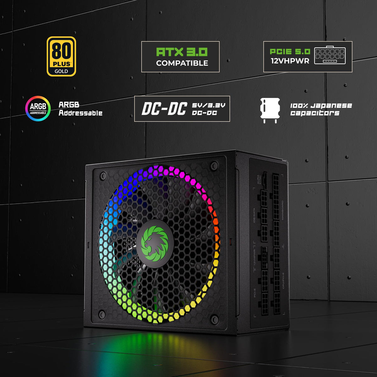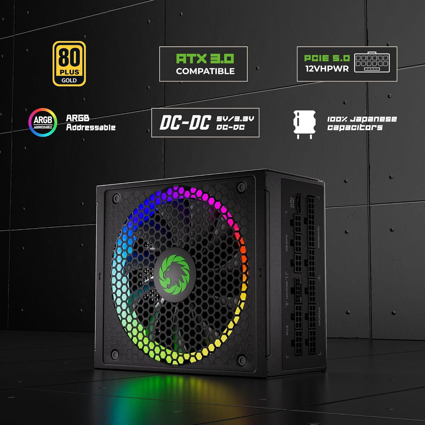 Gamemax 850W 80 Plus Gold Power Supply, Atx 3.0 & Pcie 5.0 Ready, 100% Japanese Capacitors, Fully Modular, Argb Sync, Rgb 850 Pr