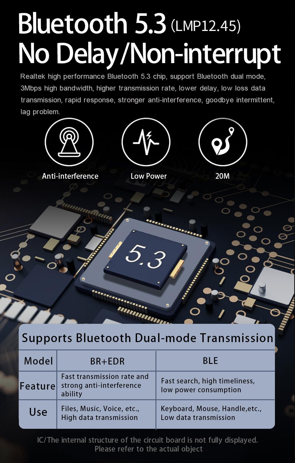 Garogyi Usb Bluetooth 5.3 Adapter For Pc, Supports Windows 11/10/8.1/7,5.3+Edr Bluetooth Wireless Transmitter Receiver For Deskt