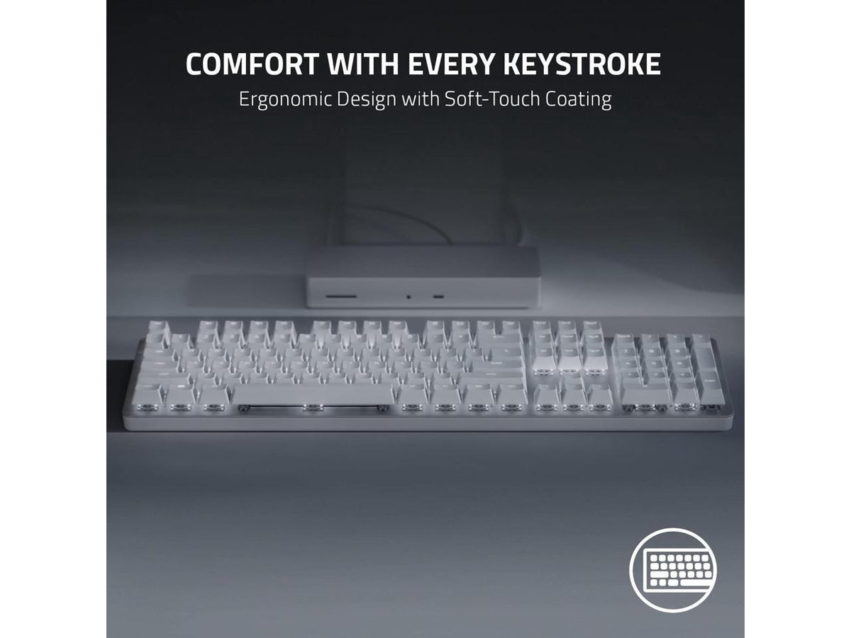 Q: Is the Razer Pro Type Ultra suitable for long typing sessions?A: Yes, the Razer Pro Type Ultra is designed for comfort during long typing sessions. Its soft wrist support and comfortable keycaps lined with a fingerprint-resistant, soft-touch coating ensure a luxurious typing experience and reduce wrist strain.