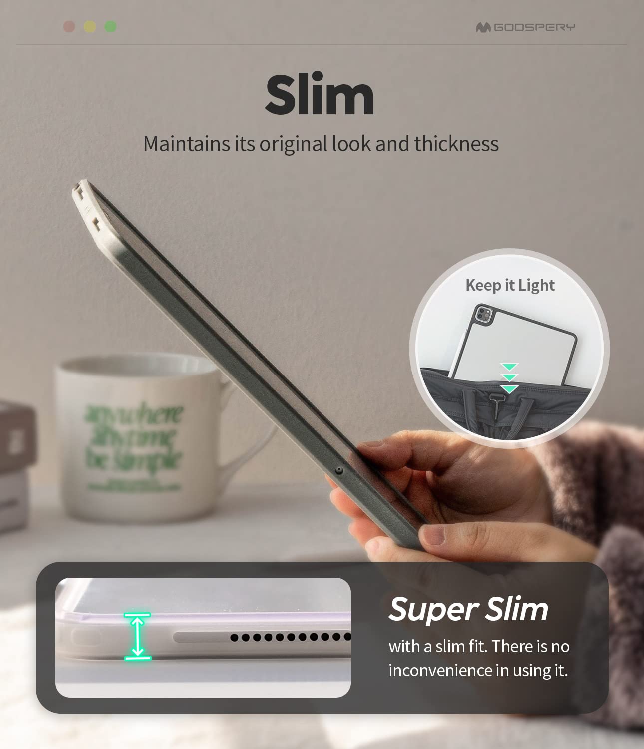 Q: Is this iPad case easy to maintain and clean?A: Yes, the Goospery Air Shield case can be easily wiped clean with a damp cloth, and its durable materials help maintain its appearance and functionality over time.