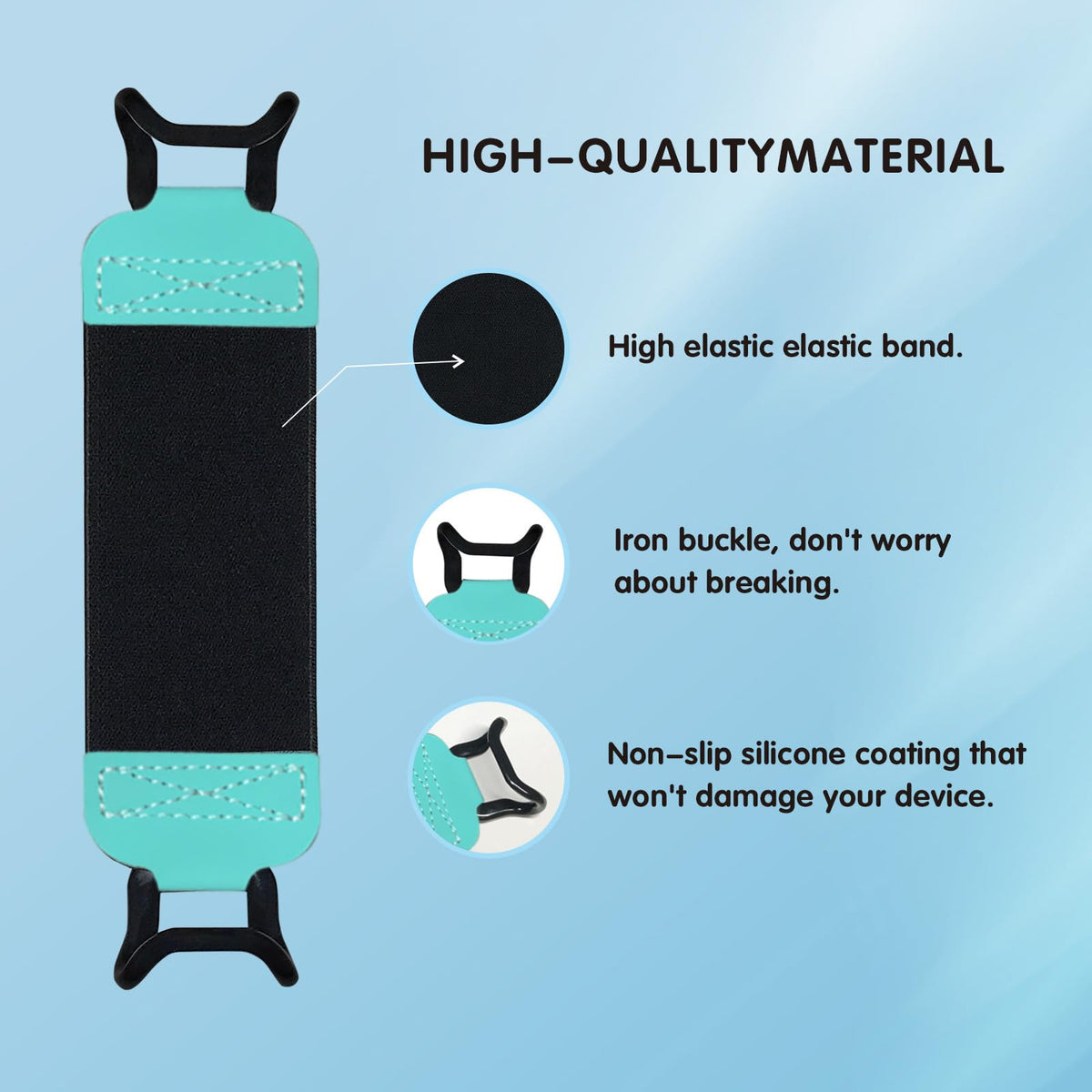 Q: What materials are used in the hand strap, and are they safe for my device?A: The hand strap is made from a high elastic band and features a non-slip silicone coating on the iron jaws. This design ensures that it is comfortable to hold while preventing scratches on your device, maintaining its safety and integrity.