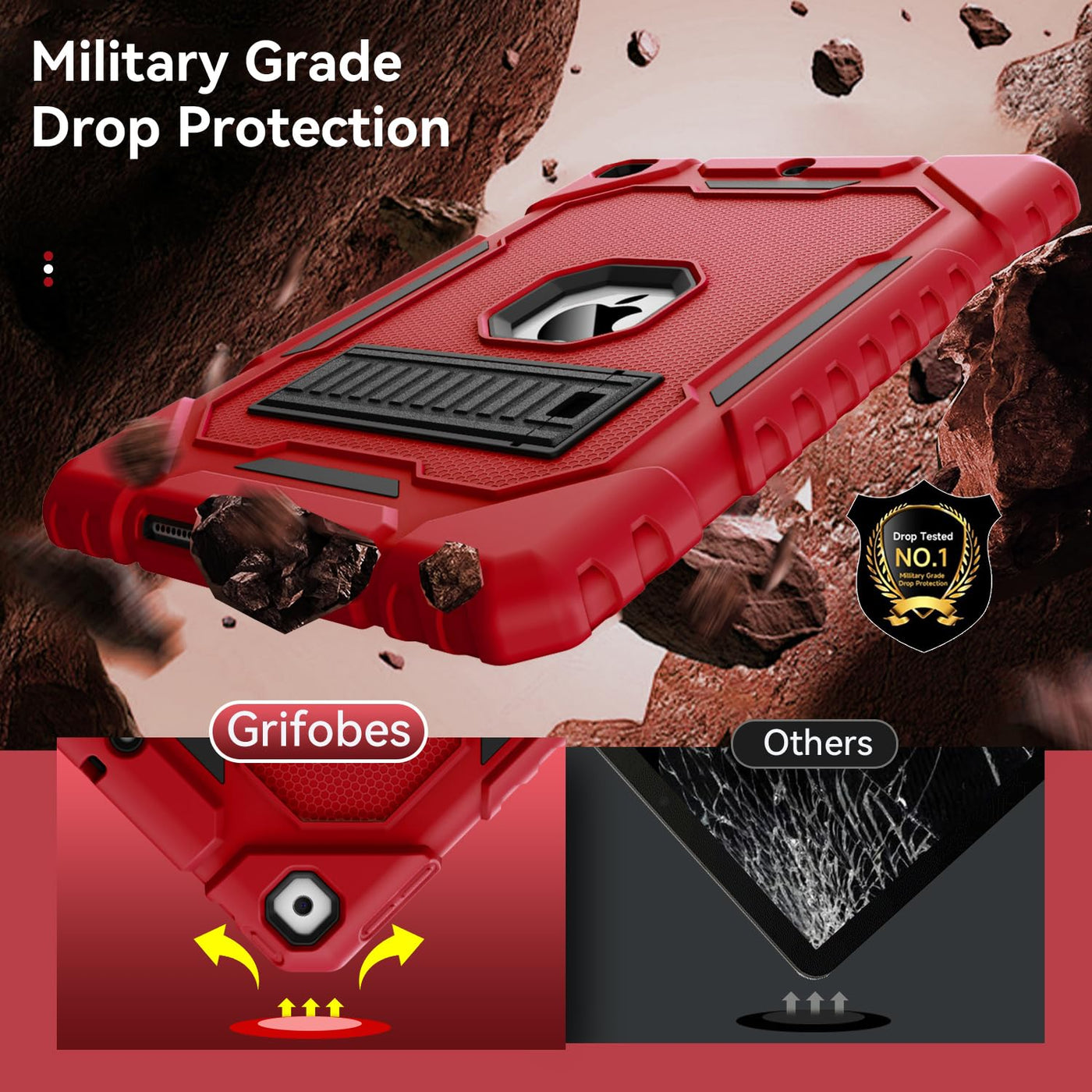 Q: What type of protection does the Grifobes Case offer?A: The Grifobes Case features a shockproof rugged design made from tough hard polycarbonate and shock-absorbent silicone. Its 3-layer robust protection structure helps safeguard your iPad 10.2 inch from scratches, accidental drops, bumps, and impacts.