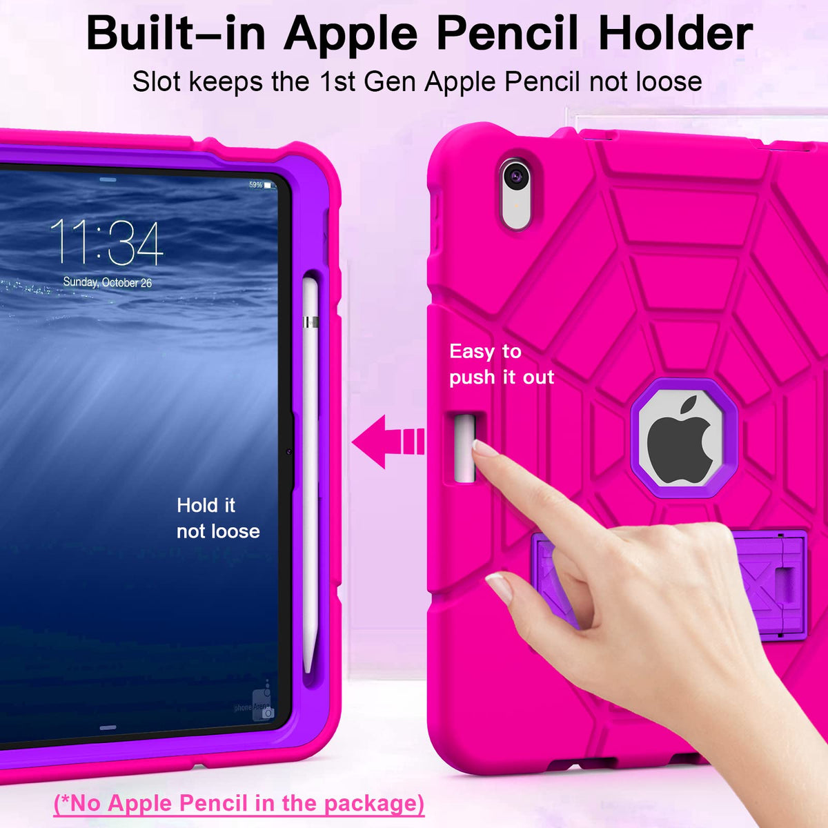 Q: Does this case have a built-in pencil holder?A: Yes, the Grifobes Kids Case includes a built-in Apple Pencil holder that securely stores the 1st generation Apple Pencil, allowing for easy access and storage.
