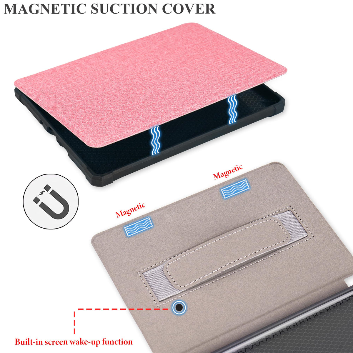 Q: What type of closure does this case have?A: The case includes a magnetic closure that securely holds the front cover to the screen when closed, preventing accidental openings. It can also be easily folded back for one-handed reading.