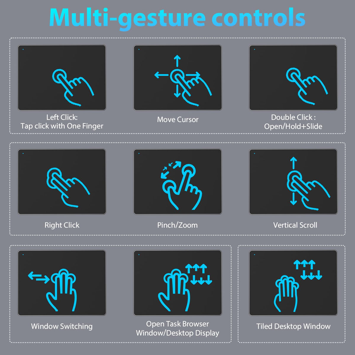 Q: How does the multi-touch functionality of the trackpad work?A: The trackpad supports enhanced multi-touch gestures, allowing you to use up to 4-finger gestures for various functions. You can navigate with one finger, right-click and zoom with two fingers, and access advanced features using three and four fingers.