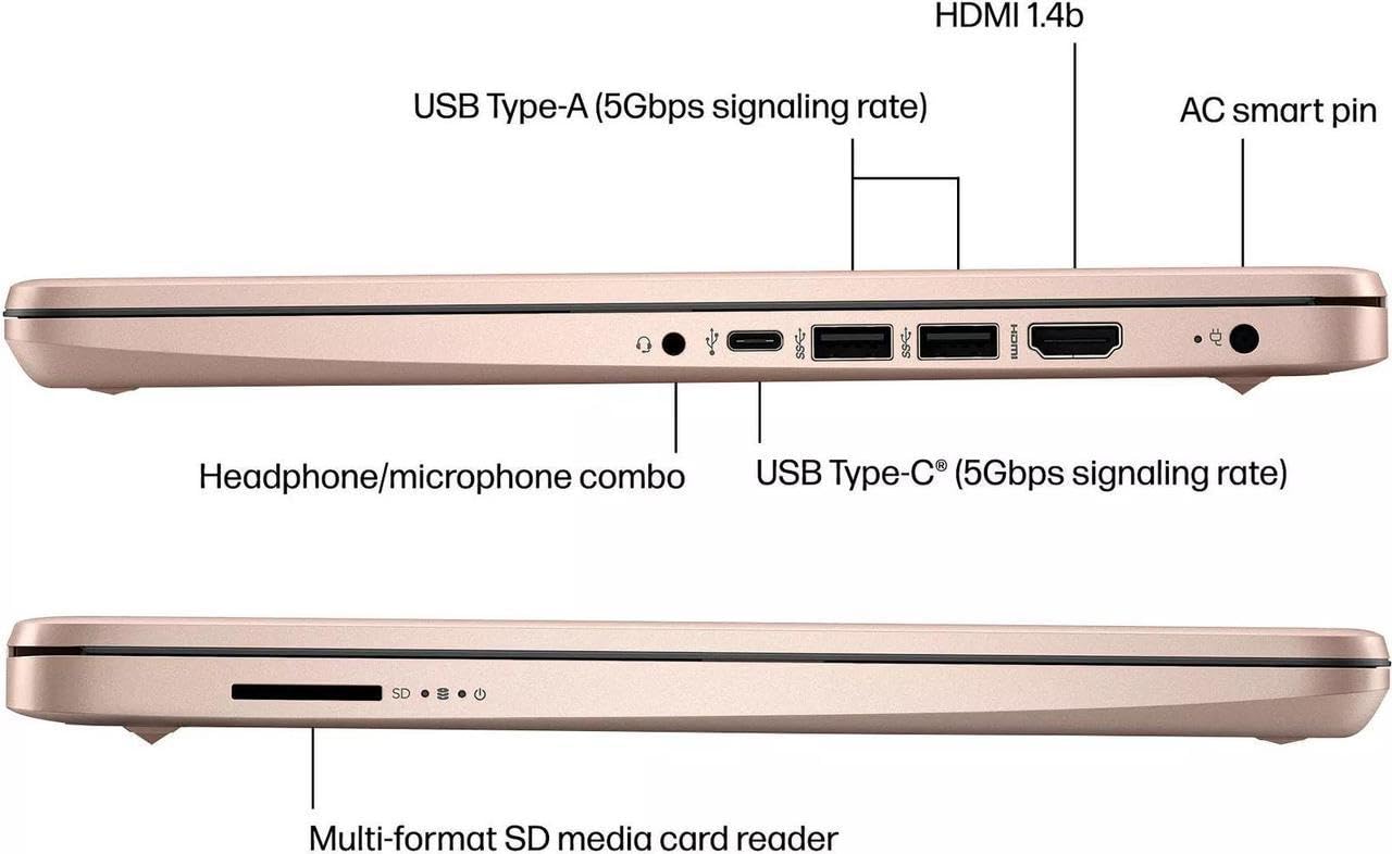 Hp 14'' Hd Laptop | Quad-Core Intel Celeron Processor | Intel Uhd Graphics| Hdmi 1.4 | Rose Gold| 16Gb Ram | 128Gb Ssd | Windows
