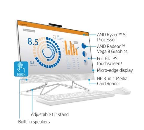 HP Latest 24 df0076 All in One Desktop 23.8' Touch Screen IPS Display, AMD Ryzen 5 3500U Processor, 8 GB RAM, 1 TB HDD, HDMI, WiFi, Webcam, Keyboard and Mouae,Windows 10
