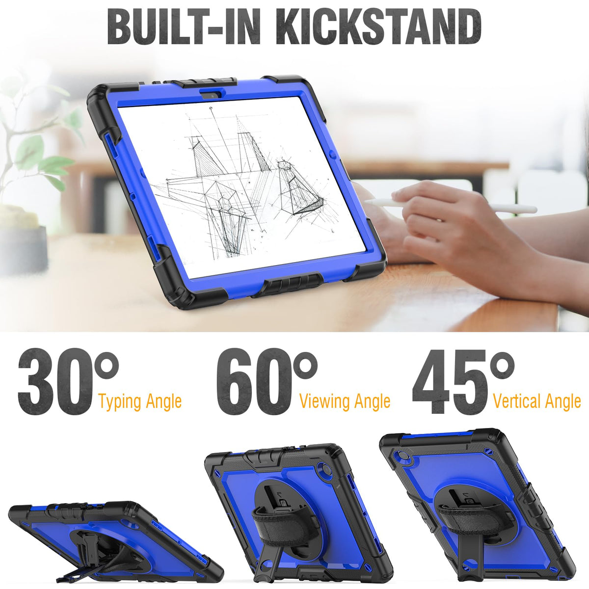 Q: Does the case come with a hand strap and stand features?A: Yes, the HXCASEAC case features a 360 rotating hand strap and a built-in stand. This allows you to comfortably hold the tablet with one hand and adjust the viewing angle for activities like drawing or typing.