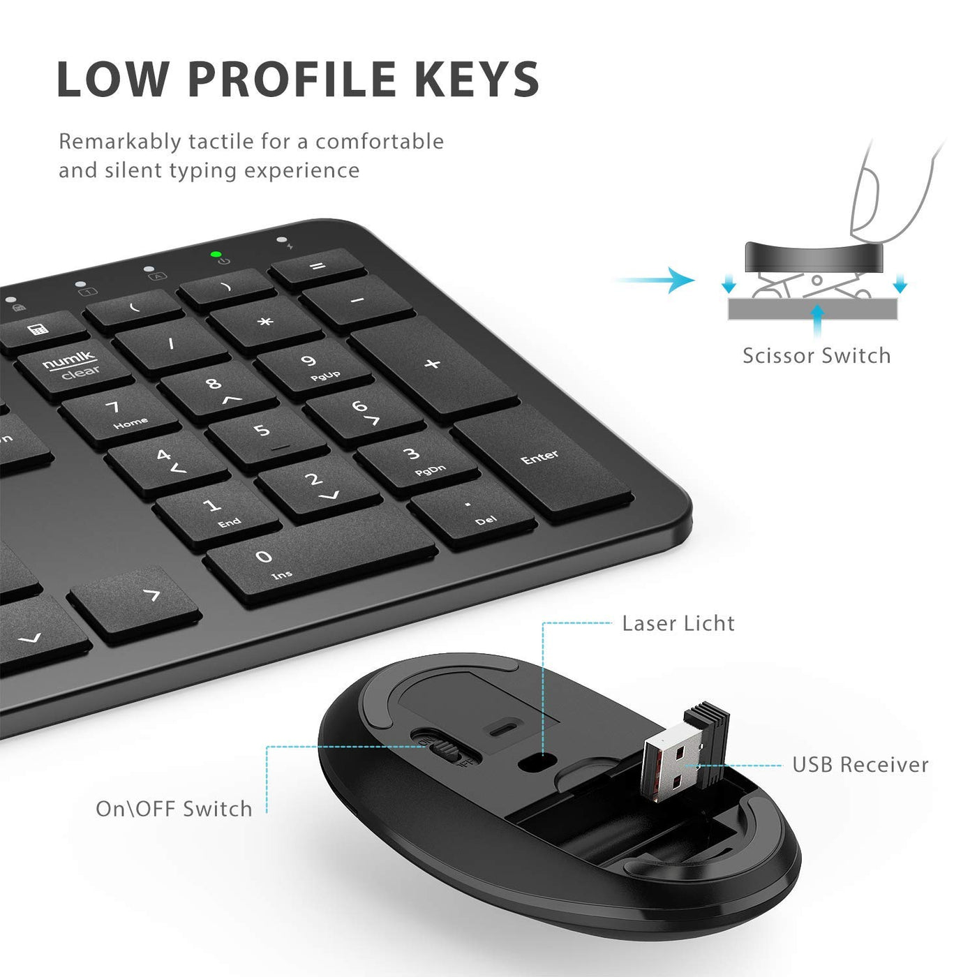 Iclever Gk08 Wireless Keyboard And Mouse Rechargeable Wireless Keyboard Ergonomic Full Size Design With Number Pad, 2.4G Stabl