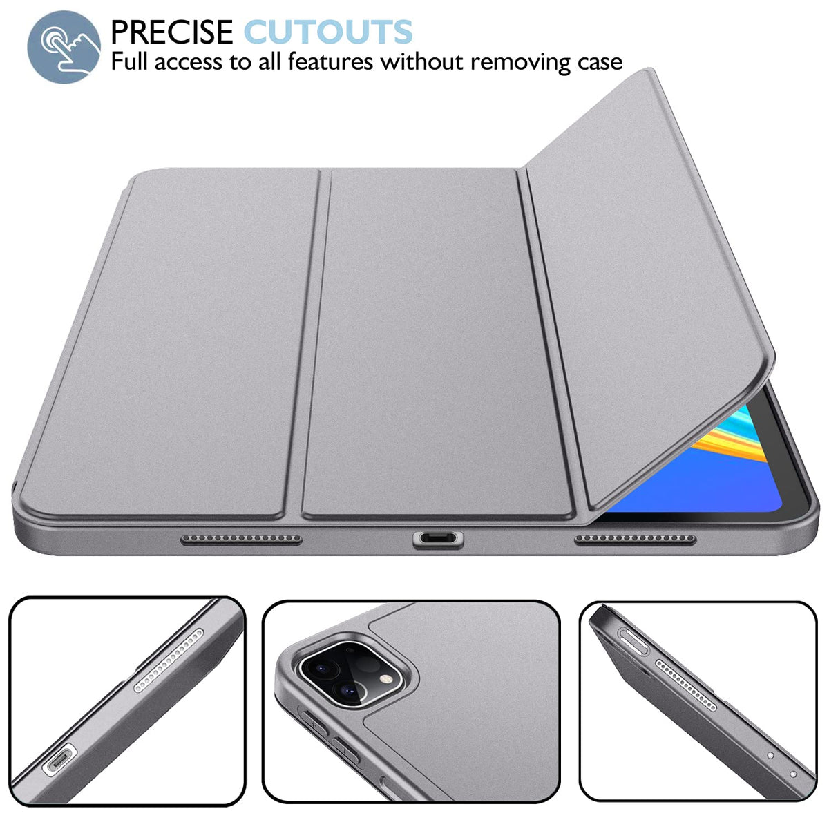 Imieet New Ipad Pro 12.9 Case 2022(6Th Gen)/2021(5Th Gen) With Pencil Holder [Support Ipad 2Nd Pencil Charging/Pair],Trifold Stand Smart Case With Soft Tpu Back,Auto Wake/Sleep(Silver Gray)