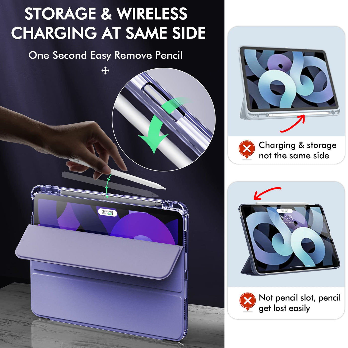 Q: Does the case support the Apple Pencil?A: Yes, the INFILAND iPad Air case features a built-in Apple Pencil holder on the right side, allowing for safe storage and wireless charging of your Apple Pencil.