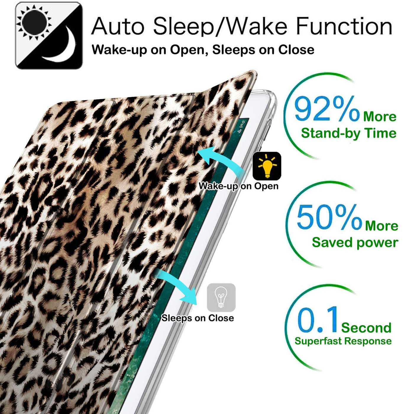 Q: Does the case support the Smart Auto Sleep/Wake function?A: Absolutely! The case features a built-in magnet that automatically puts your iPad to sleep when closed and wakes it up when opened, helping to conserve battery life.