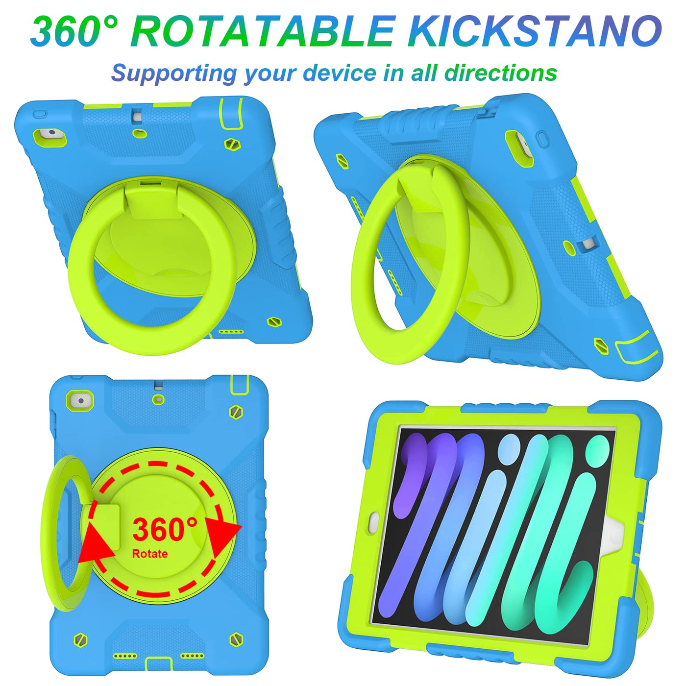 Q: Can I use the iPad while the case is on?A: Absolutely! The case features precise cutouts for all buttons, cameras, and sensors, allowing you to easily access your iPad's functions. Additionally, the 360° swivel folding stand provides multiple viewing angles for comfortable use.