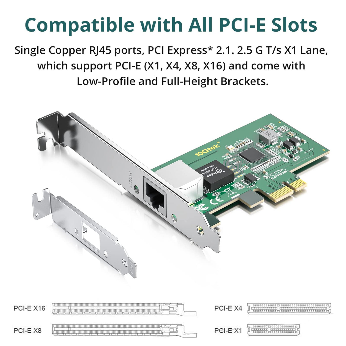 High-Speed Data Transfer: This network card operates on the PCI Express 2.1 standard with a transfer rate of 2.5 G T/s on an X1 lane, compatible with PCI-E X1/X4/X8/X16 slots, ensuring optimal performance.