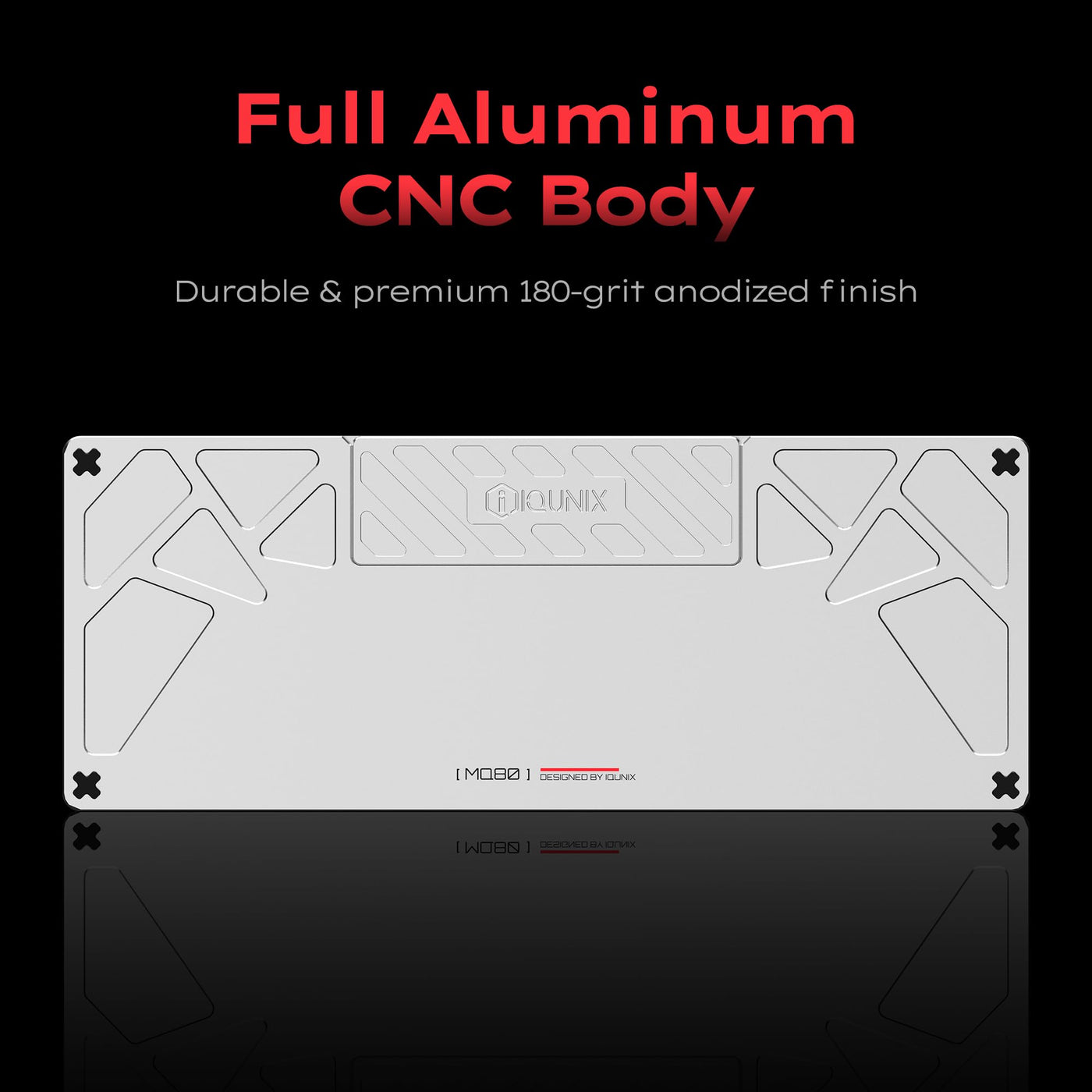 Iqunix Mq80 Redefines The Low-Profile Mechanical Keyboard With A Perfect Blend Of Ergonomic Comfort, Long-Lasting Durability, And Personalized Customization. Ergonomic Excellence Designed With A Slim 10.2Mm Front Height, Iqunix Mq80 Facilitates A Neutral Wrist Position, Reducing Strain And Enhancing Comfort During Prolonged Use. Durable Aluminum Build For Everyday Confidence Built With A Cnc-Machined Aluminum Body, The Mq80 Not Only Looks Premium But Also Withstands Daily Wear And Tear-Providing A Solid, Stable Typing Foundation That Lasts. Seamless Tri-Mode Connectivity For All Your Devices Switch Effortlessly Between Bluetooth 5.1, 2.4Ghz Wireless, And Usb-C Wired Modes. Whether You'Re On A Mac, Windows, Tablet, Or Phone, The Mq80 Delivers Consistent, Lag-Free Performance Across All Platforms. Customizable Typing Feel Equipped With Hot-Swappable Kailh Pom Gold Switches, The Mq80 Lets You Easily Customize Your Typing Feel Without Soldering, Delivering A Smoother And More Personalized Experience. Extended Battery Life The Substantial 4000Mah Battery Supports Extended Use, While The Customizable 16M-Color Rgb Lighting, Programmable Via Via Software, Allows Users To Personalize Their Workspace Ambiance. Minimalist Colors That Fit Your Setup Choose From Shadow Black Or Moonlight Silver-Two Clean, Modern Finishes That Complement Any Workspace Or Gaming Station.