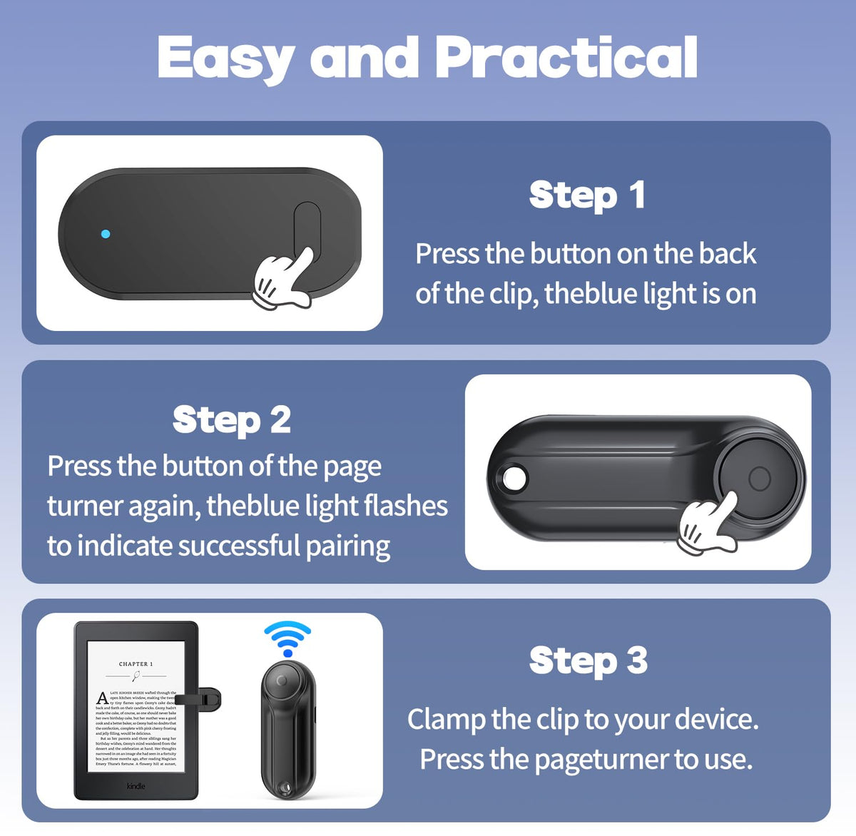 ?Kindle Remote Page Turner?K3 New Model Page Turner Fit For Multiple Ebook Readers With Touchscreens. With The Page Turning Remote Control, No Need To Continuously Touch The Kindle Screen To Flip Pages. Simply Press The Button For Remote Page Flipping. Adapt To Multiple Platforms, Kindle(Incompatible Devices: Kindle 8Th Generation), Kindle Paperwhite, Kindle Oasis, Kindle Kids Edition, Kindle Voyage, Ipad, Iphone, Android Tablets, Surface, Kobo, Iphone Ipad Page Turner. Page Turner Be Designed With Mute Button,When You Reading In The Night,Will Not Noise Others. | Controller Type: Button Control | Maximum Range: 10.0 Meters | Compatible Devices: Supports Capacitive Screen Devices Only, E-Reader,Surface,Kindle,Iphone,Kobo,Android,Ipad,Tablets,Smartphone,Kindle Paperwhite,Kindle Oasissupports Capacitive Screen Devices Only, E-Reader,Surface,Kindle,Iphone,Kobo,Android,Ipad,Tablets,Smartphone,Kindle Paperwhite,Kindle Oasis | Special Feature: Page Turner, Remote Control Video Shooting, Remote Photo Shoot | Connectivity Technology: No Bluetooth No Wi-Fi | Supported Devices Quantity: 1 | Item Dimensions: 1.14 Inches