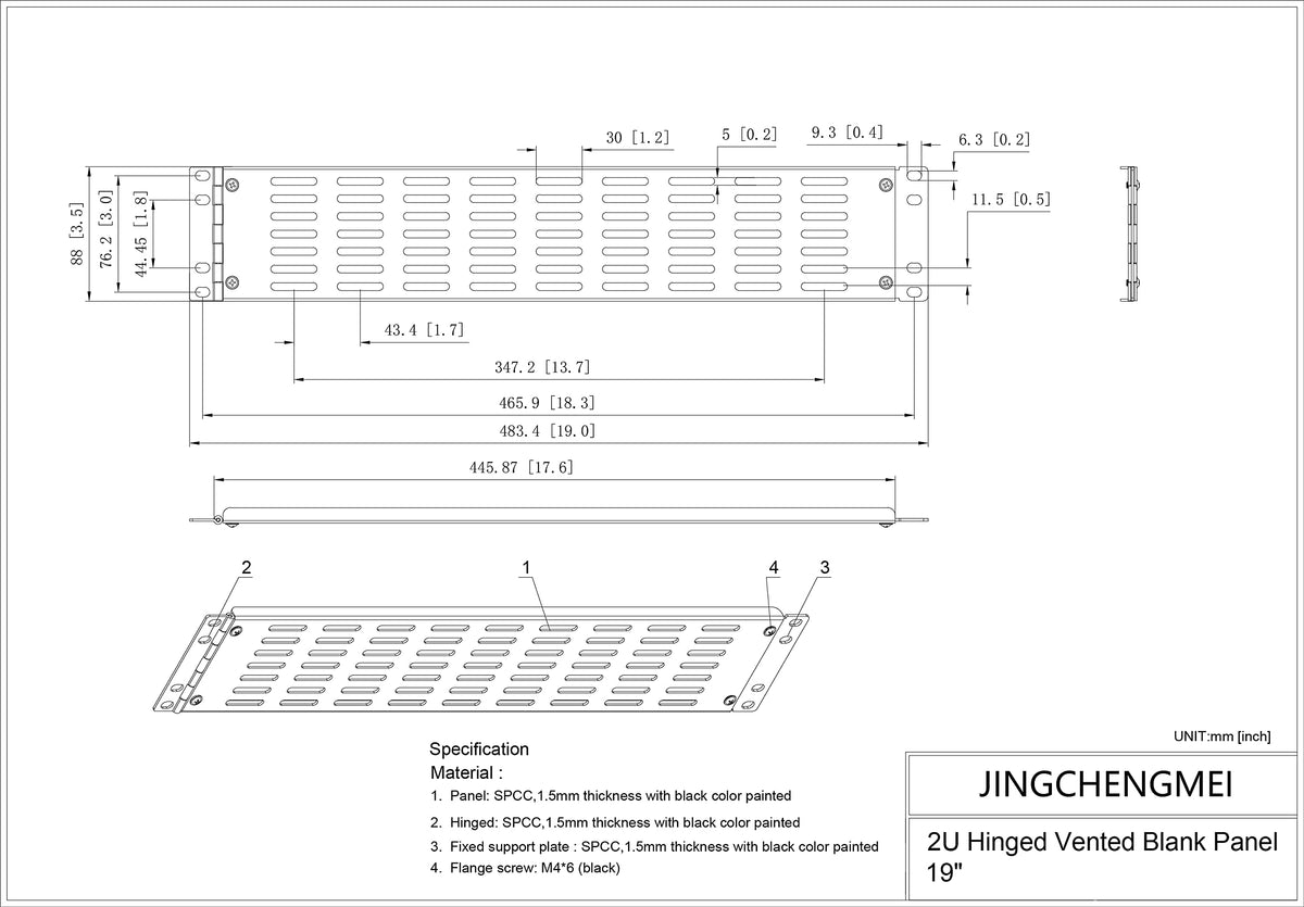 Product Size: 2U, 19 Inches Width Including: 1 X Main Panel 1 X Holding Side 1 X Hinged Side 4 X M4 Screws