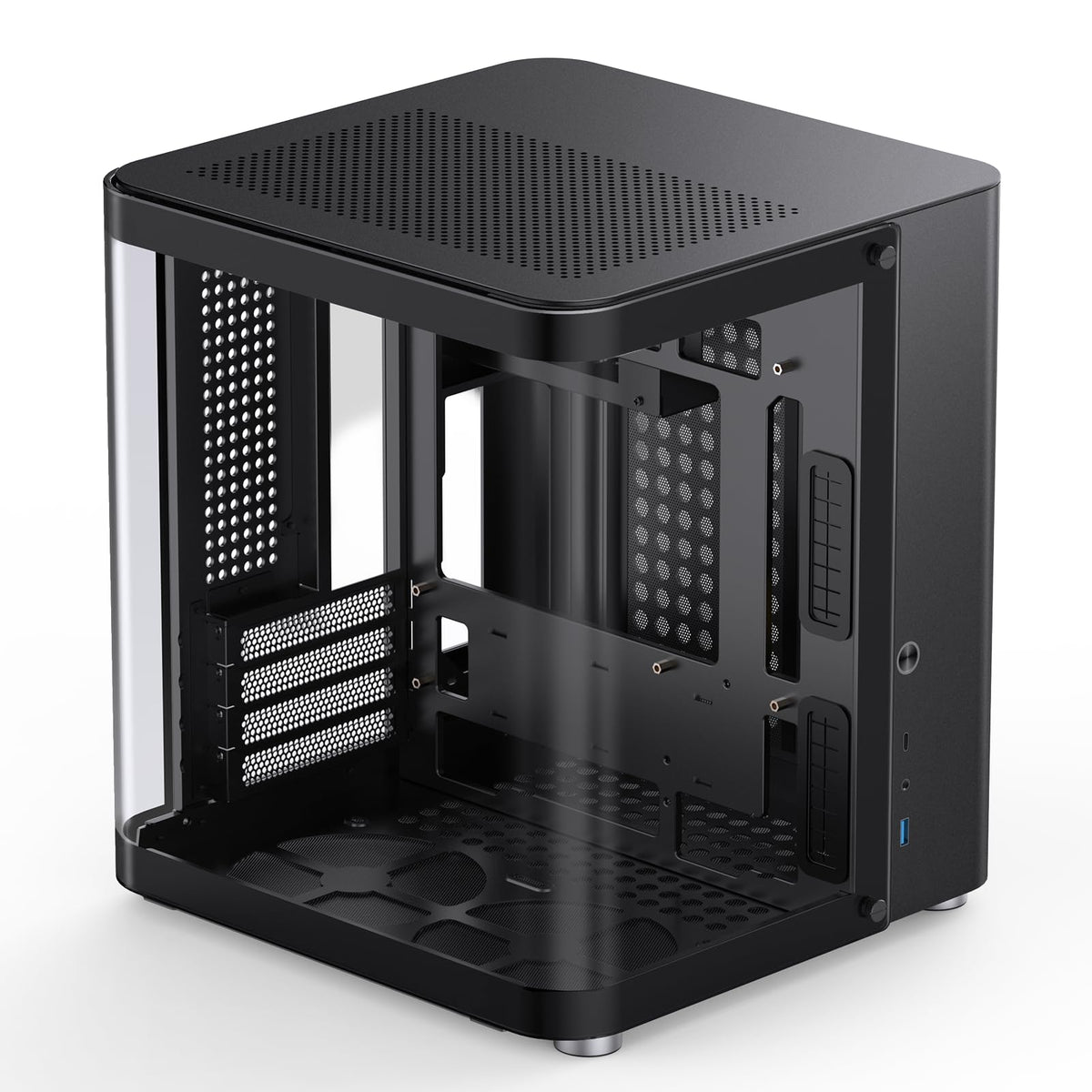 Jonsbo Tk 1 Black Micro Atx Mini Tower Computer Case, Hyperboloid Glass Design, Separated Cabinet Structure, Al Alloy Shell Matx