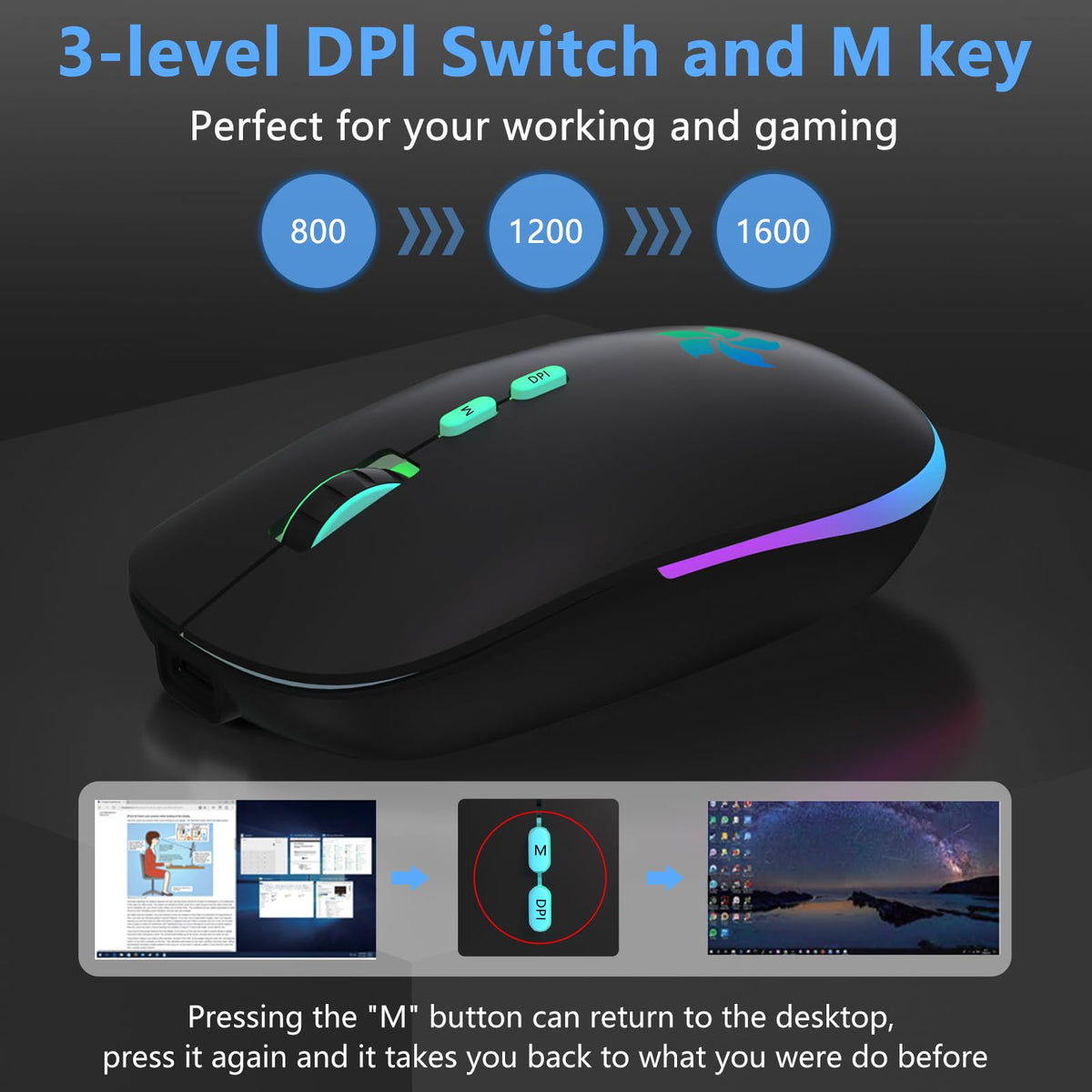 Karfun Wireless Mouse, Bluetooth Mouse & 2.4Ghz Two Mode Wireless Mouse, 7 Color Breathing Lights Computer Mouse For Laptop/Macb